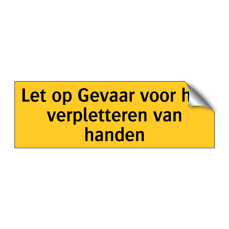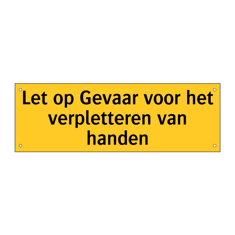 Waarschuwingsbord met de tekst Let op Gevaar voor het verpletteren van handen
