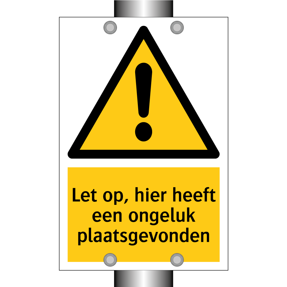 Waarschuwingsbord met de tekst Let op, hier heeft een ongeluk plaatsgevonden