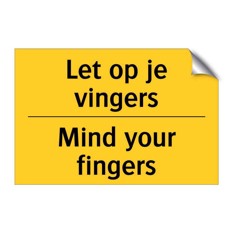 Waarschuwingsbord met de tekst Let op je vingers / Mind your fingers