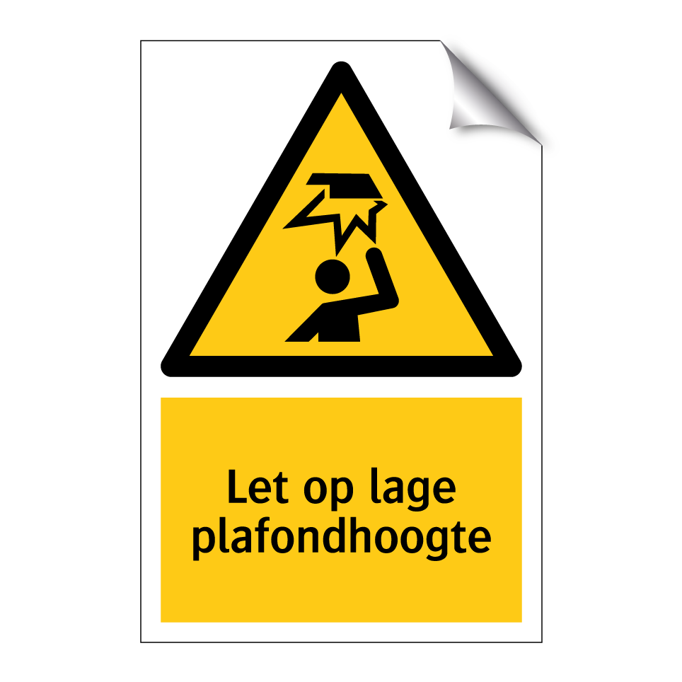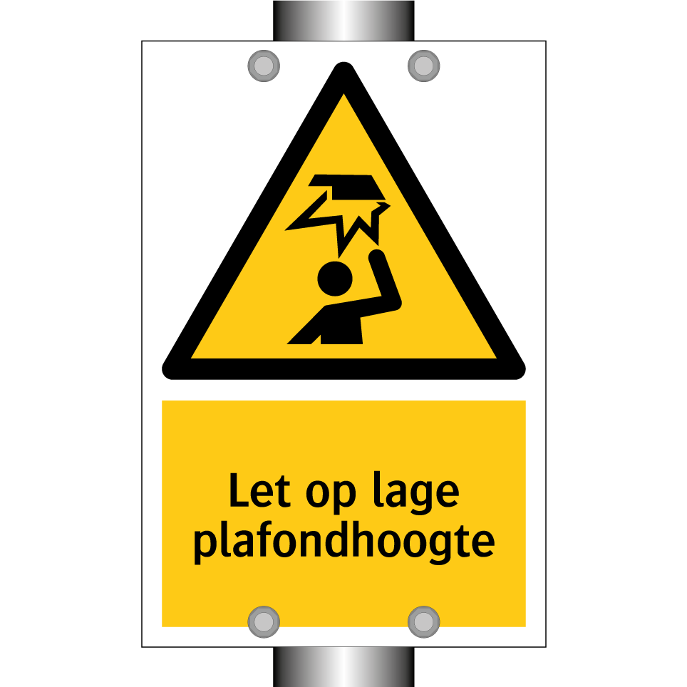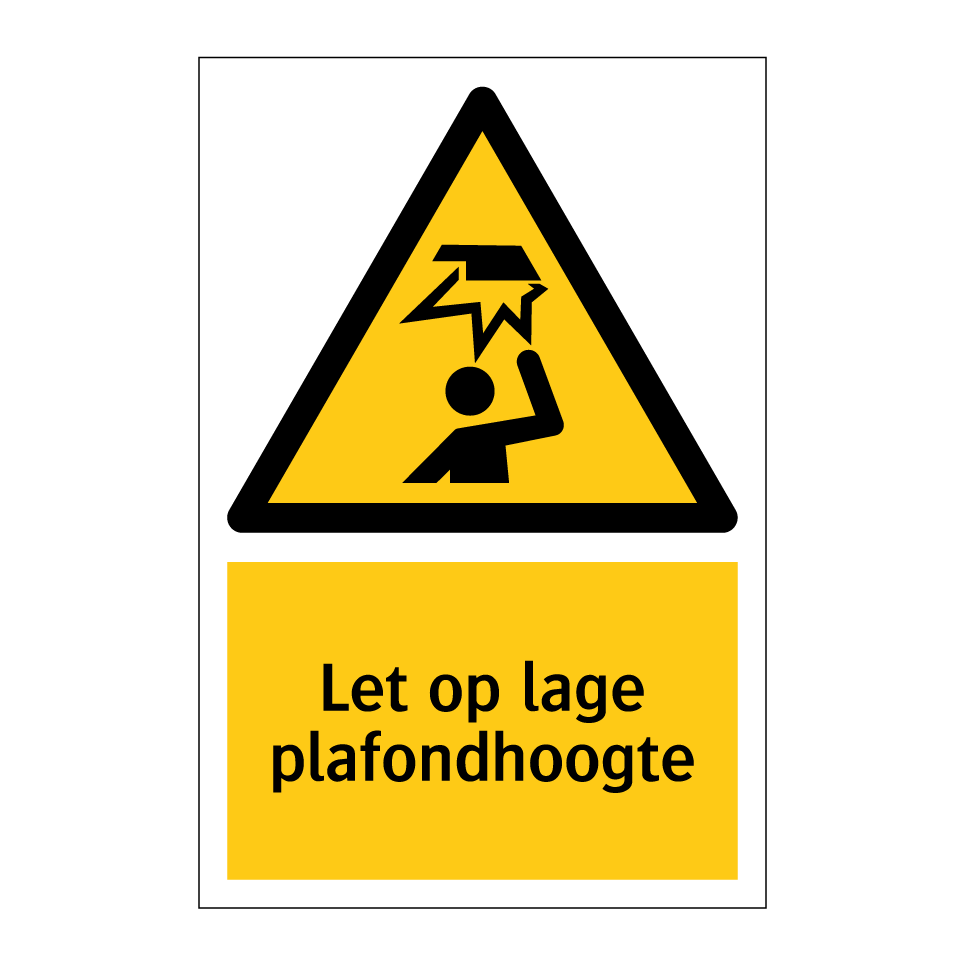 Waarschuwingsbord met de tekst Let op lage plafondhoogte