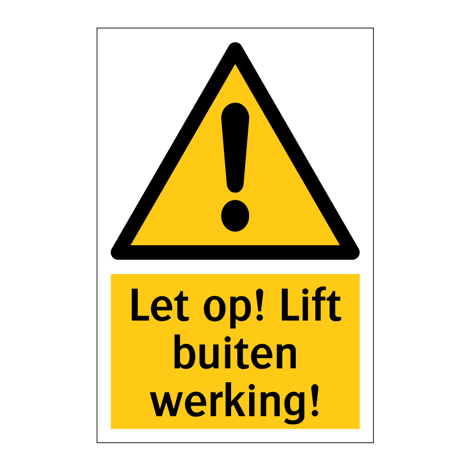 Waarschuwingsbord met de tekst Let op! Lift buiten werking!