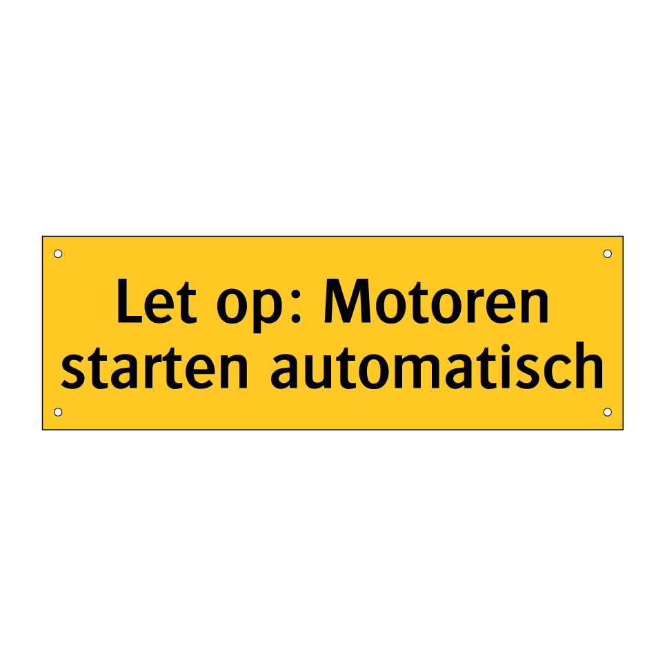 Waarschuwingsbord met de tekst Let op: Motoren starten automatisch
