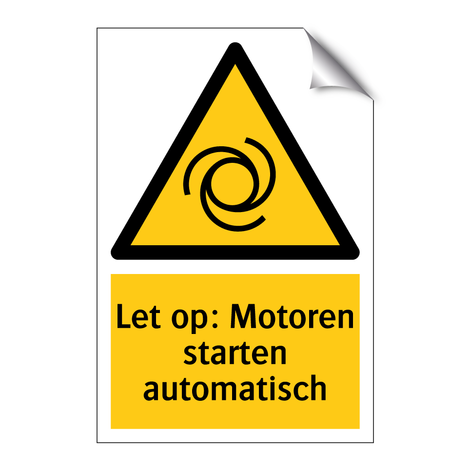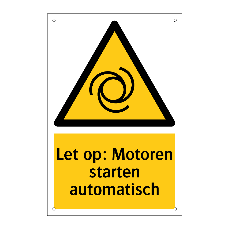 Waarschuwingsbord met de tekst Let op: Motoren starten automatisch