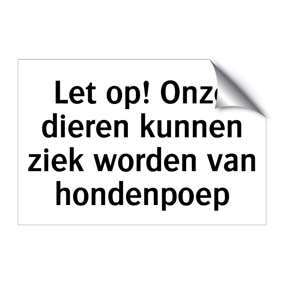 Verbodsbord met de tekst Let op! Onze dieren kunnen ziek worden van hondenpoep