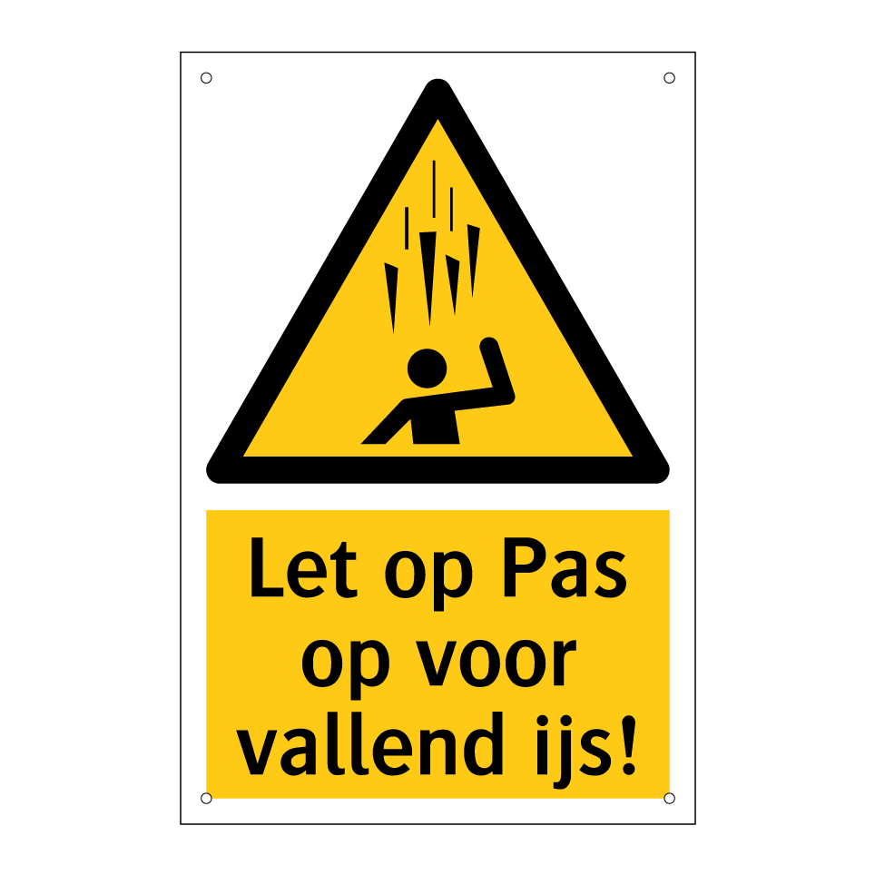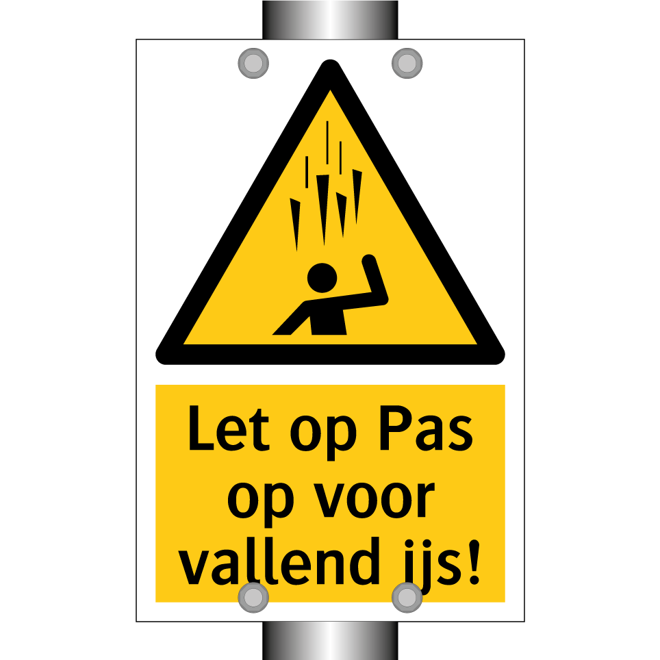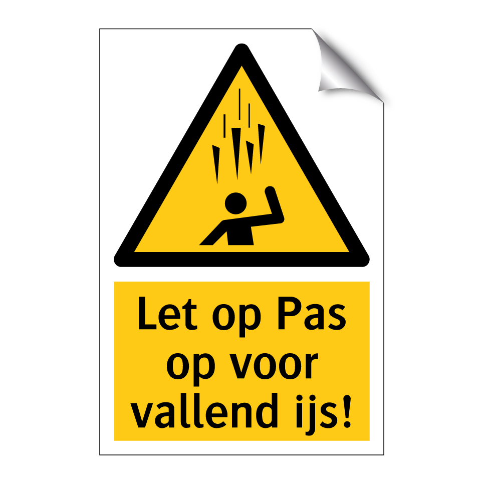 Waarschuwingsbord met de tekst Let op Pas op voor vallend ijs!