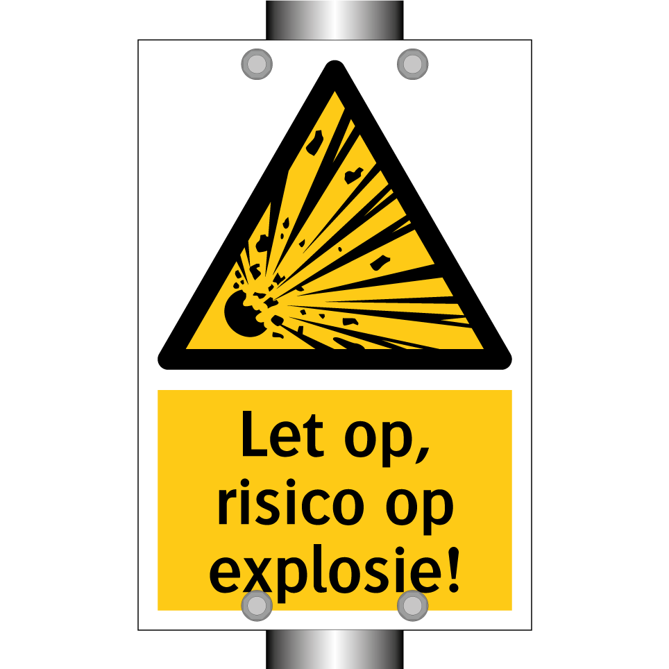 Waarschuwingsbord met de tekst Let op, risico op explosie!
