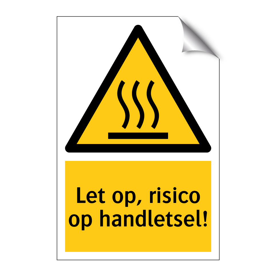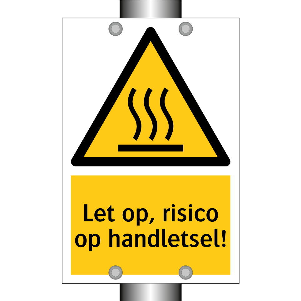 Waarschuwingsbord met de tekst Let op, risico op handletsel!