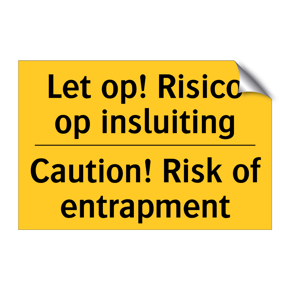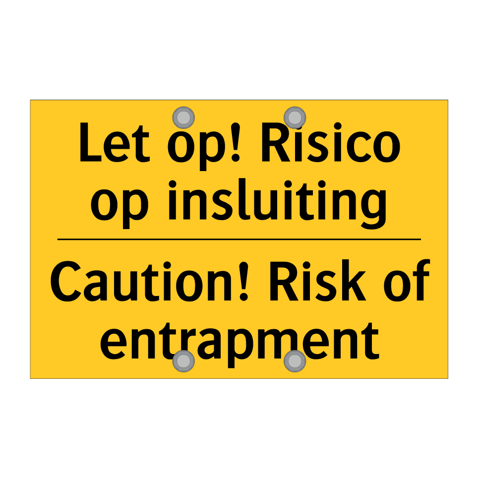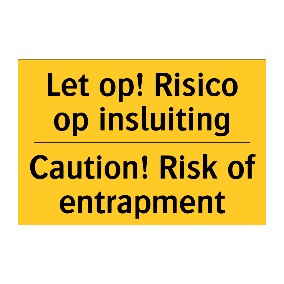 Waarschuwingsbord met de tekst Let op! Risico op insluiting / Caution! Risk of entrapment