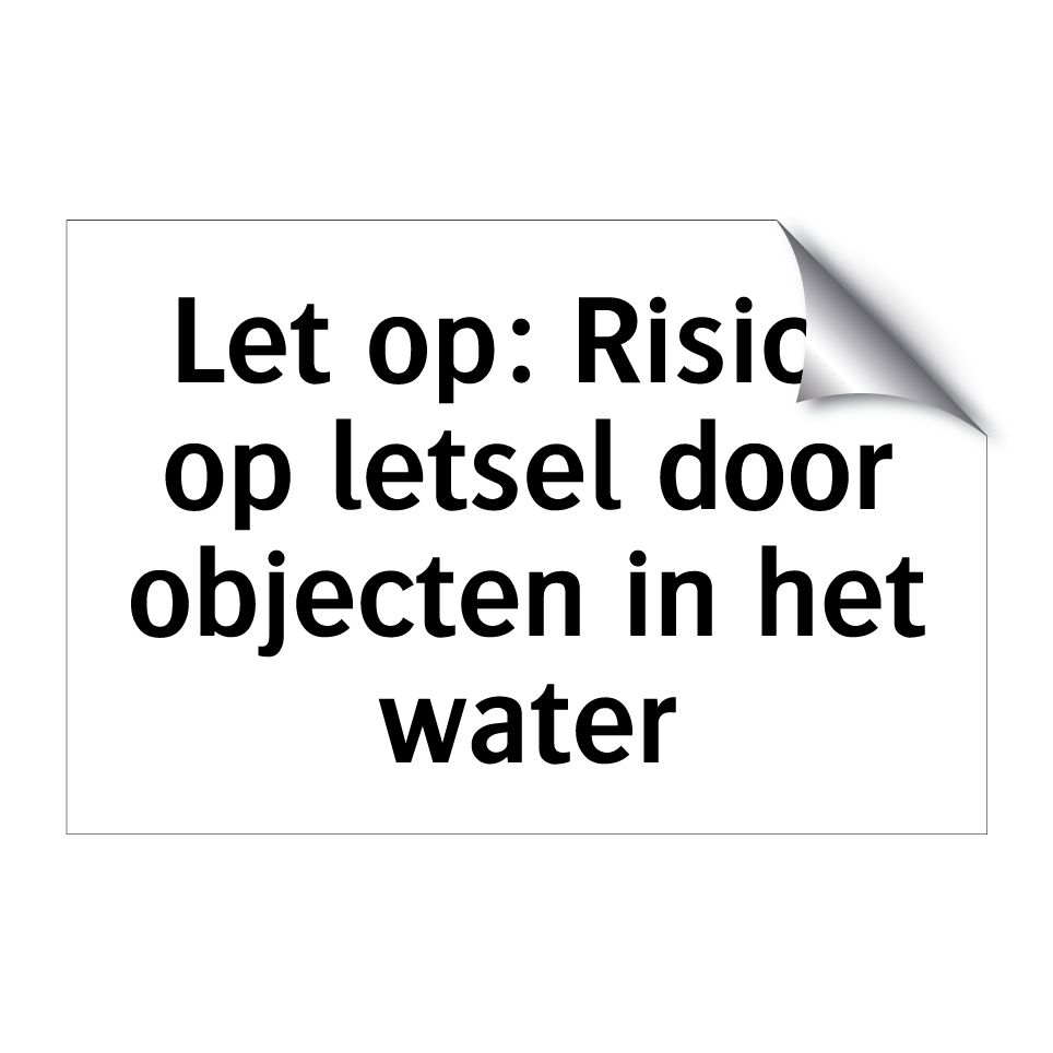 Verbodsbord met de tekst Let op: Risico op letsel door objecten in het water