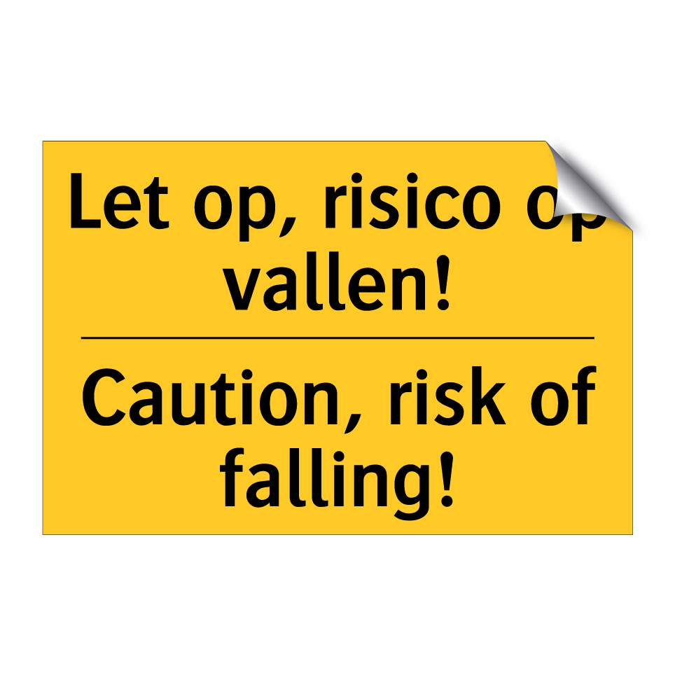 Waarschuwingsbord met de tekst Let op, risico op vallen! / Caution, risk of falling!