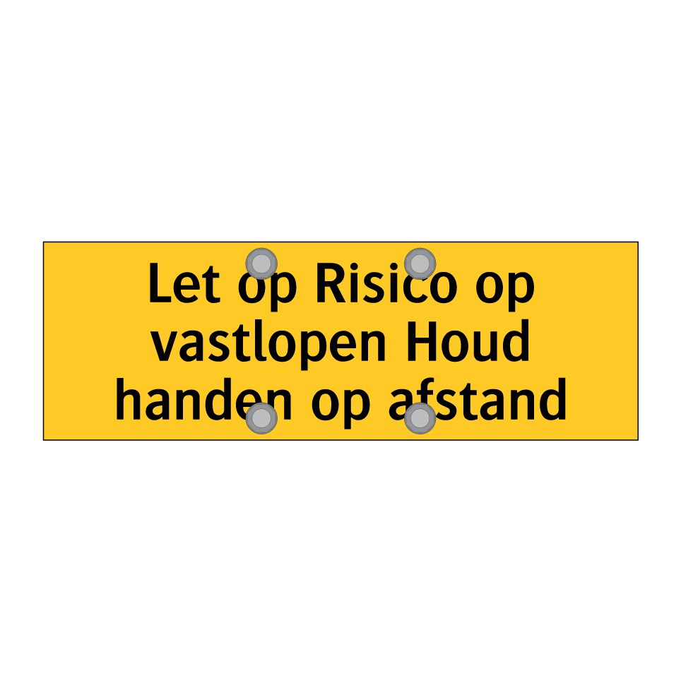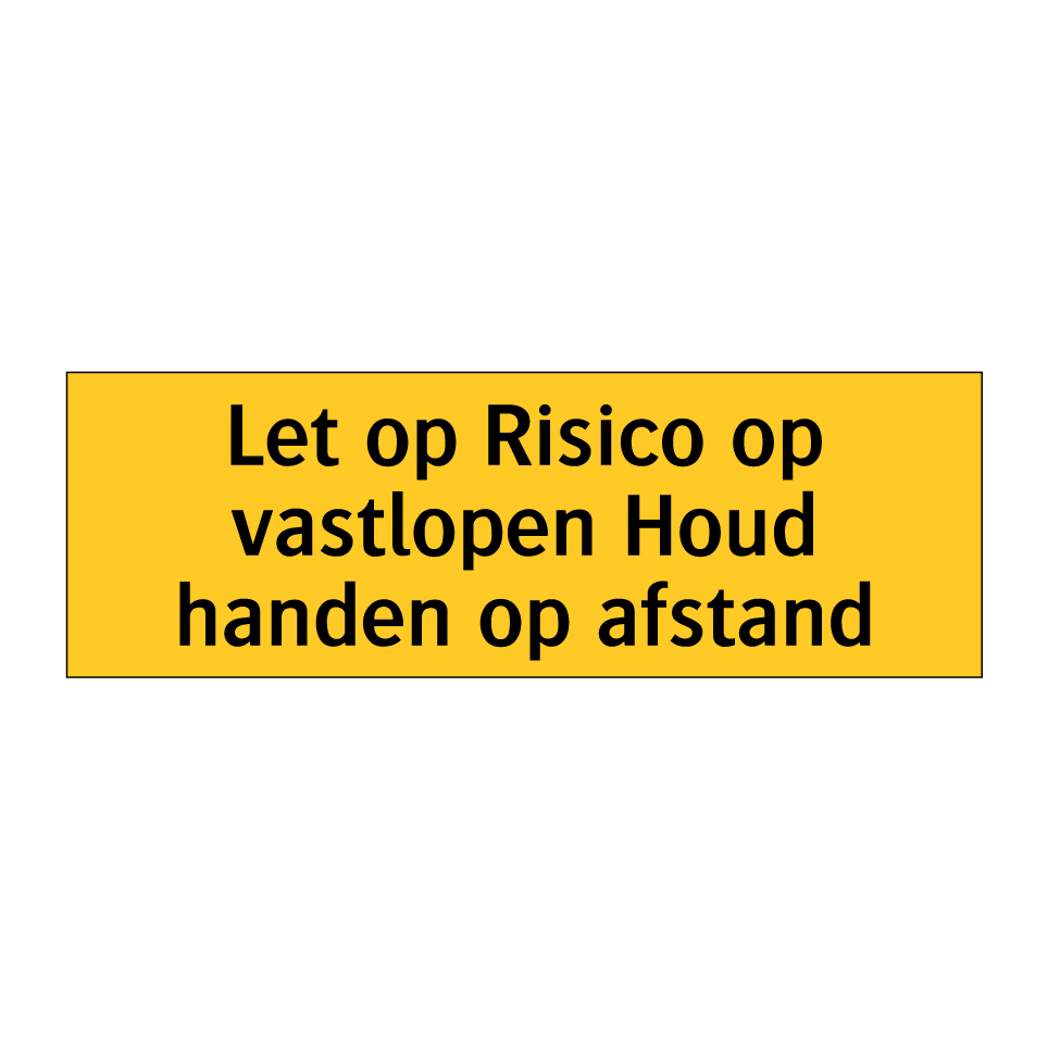 Waarschuwingsbord met de tekst Let op Risico op vastlopen Houd handen op afstand