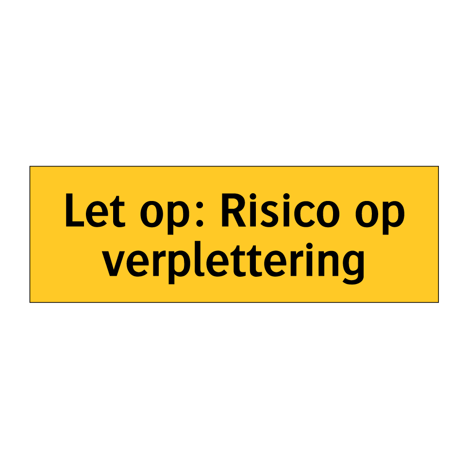 Waarschuwingsbord met de tekst Let op: Risico op verplettering