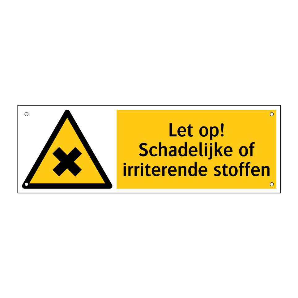 Waarschuwingsbord met de tekst Let op! Schadelijke of irriterende stoffen