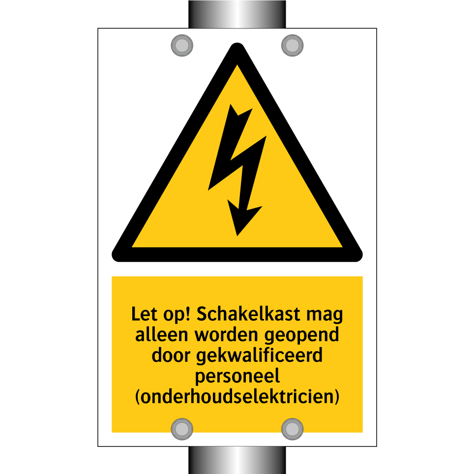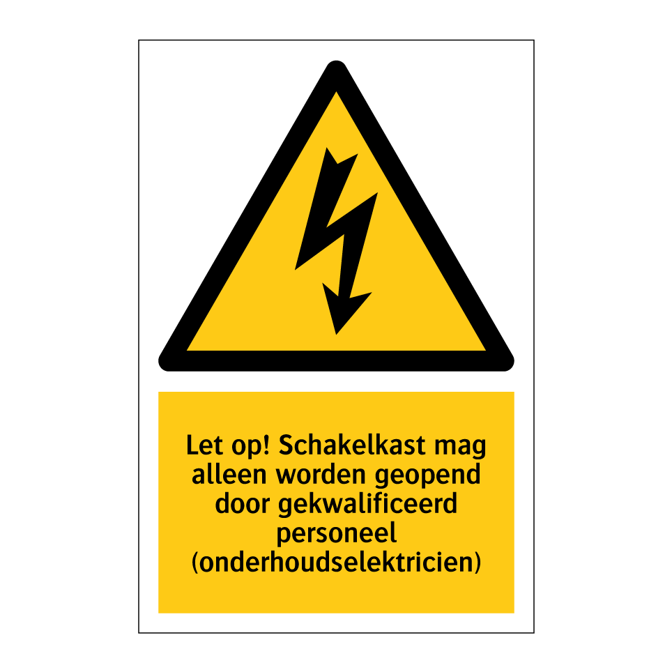 Waarschuwingsbord met de tekst Let op! Schakelkast mag alleen worden geopend door gekwalificeerd personeel (onderhoudselektricien)