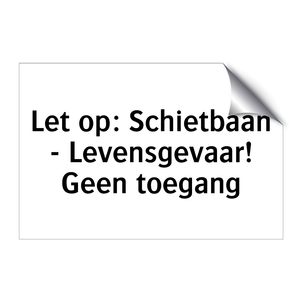 Deze opvallende verbodsbord is essentieel voor het waarborgen van de veiligheid in de buurt van schietbanen. Het waarschuwt voorbijgangers voor het levensgevaar en benadrukt het belang van het vermijden van toegang tot het gebied. Ideaal voor gebruik bij schietclubs, militaire oefenterreinen of andere locaties waar schietoefeningen plaatsvinden. Door de duidelijke boodschap en het contrasterende ontwerp is het bord goed zichtbaar en effectief in het voorkomen van ongeautoriseerde toegang. Plaats het bij ingangen, hekken of andere strategische punten om de veiligheid te garanderen en ongelukken te voorkomen.