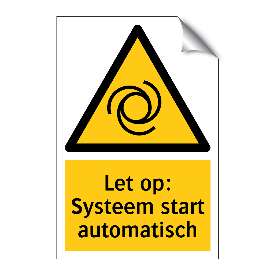 Waarschuwingsbord met de tekst Let op: Systeem start automatisch