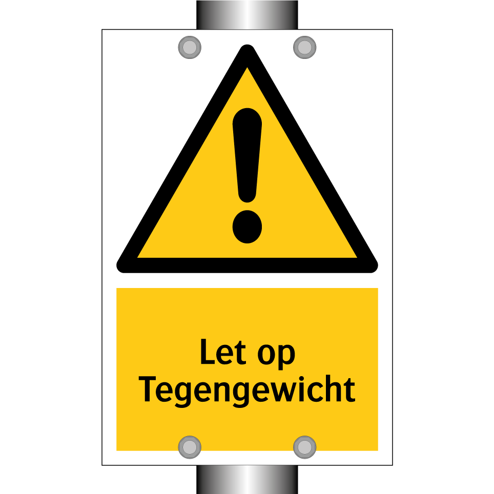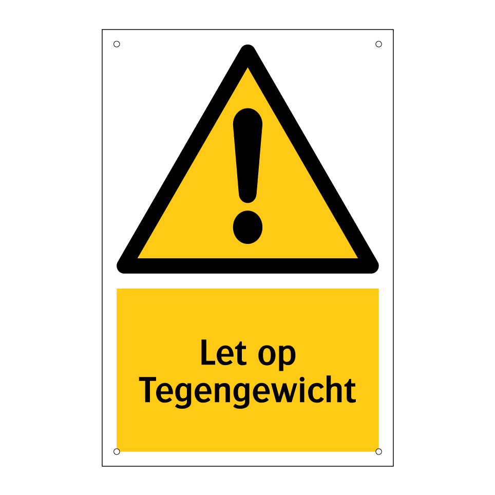 Waarschuwingsbord met de tekst Let op Tegengewicht