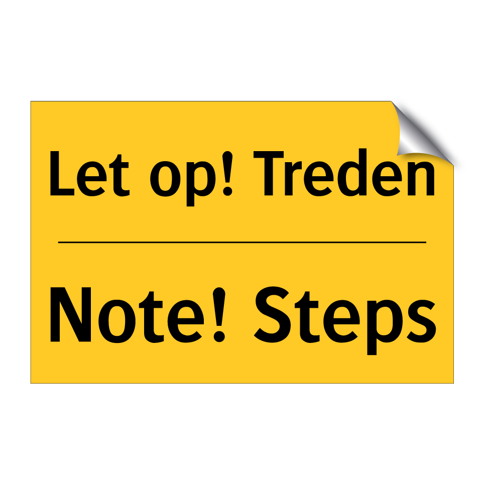 Waarschuwingsbord met de tekst Let op! Treden / Note! Steps