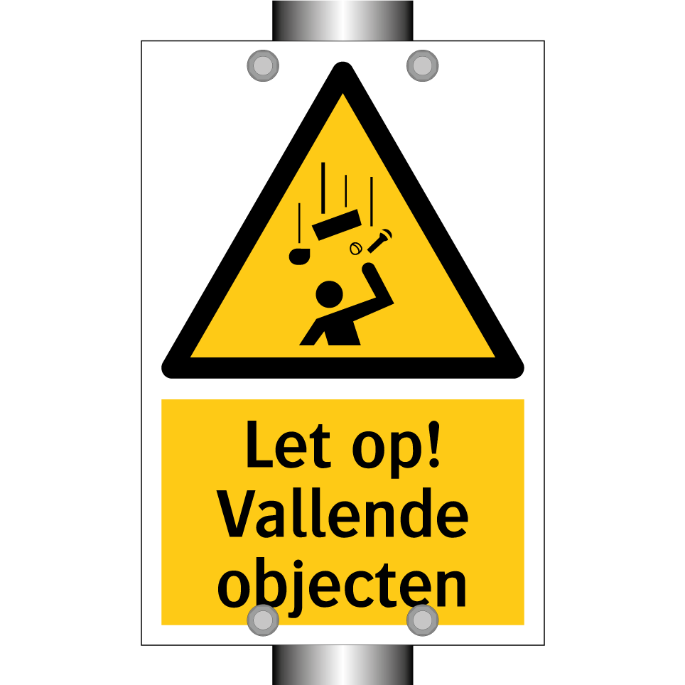 Waarschuwingsbord met de tekst Let op! Vallende objecten