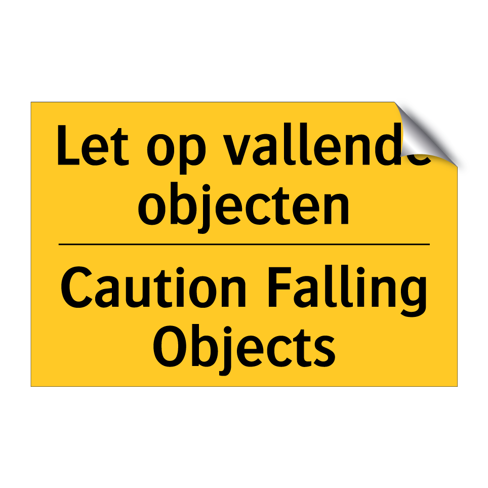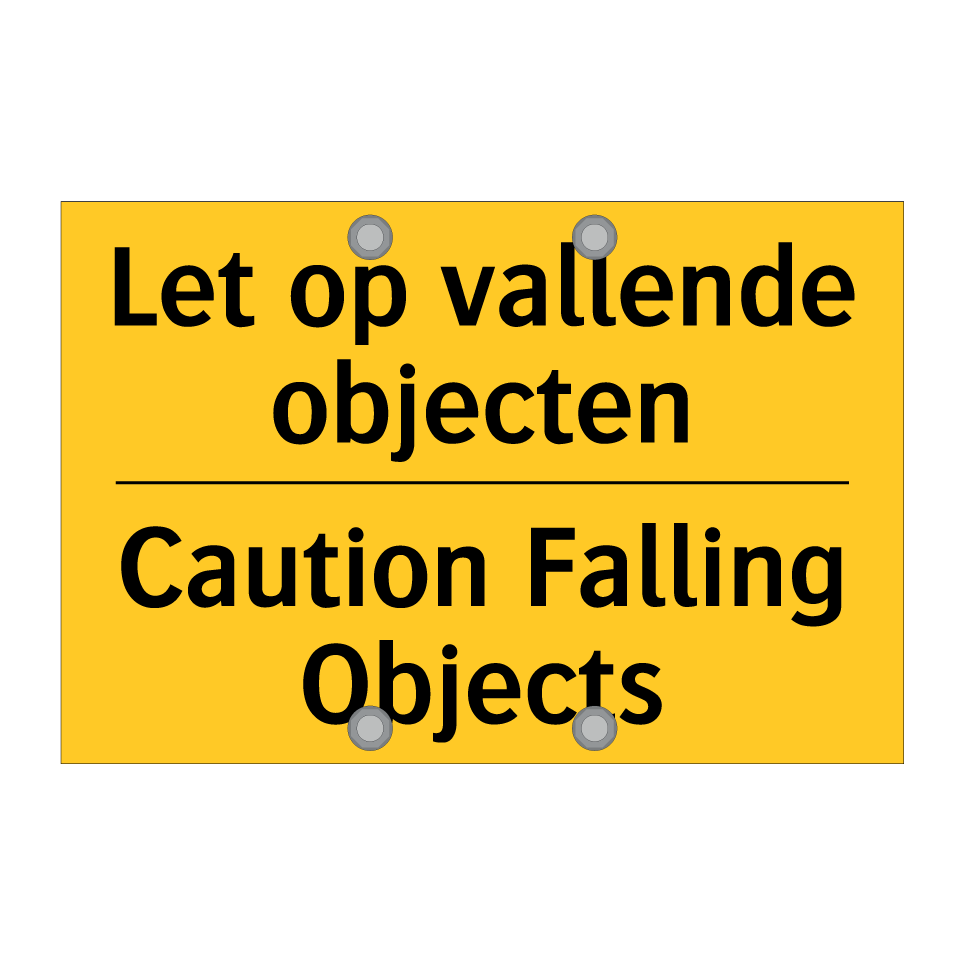 Waarschuwingsbord met de tekst Let op vallende objecten / Caution Falling Objects
