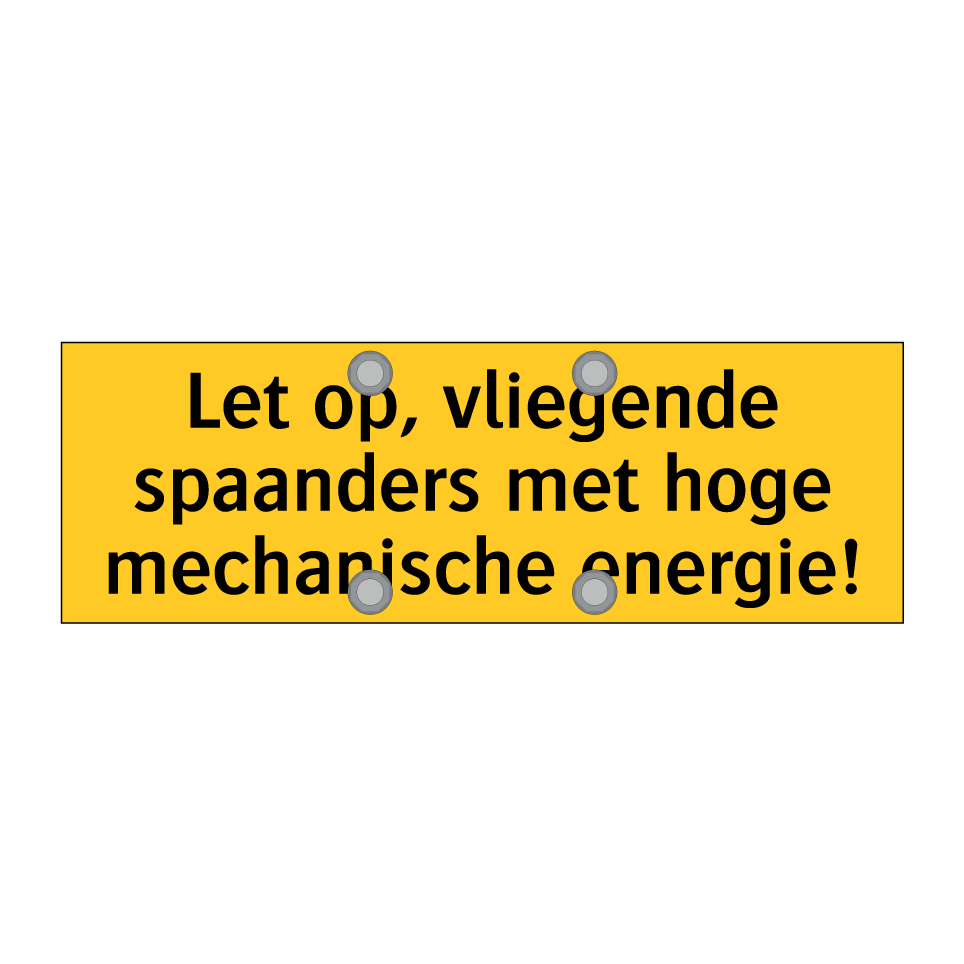 Waarschuwingsbord met de tekst Let op, vliegende spaanders met hoge mechanische energie!