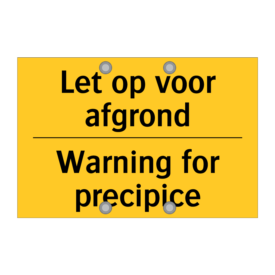Waarschuwingsbord met de tekst Let op voor afgrond / Warning for precipice