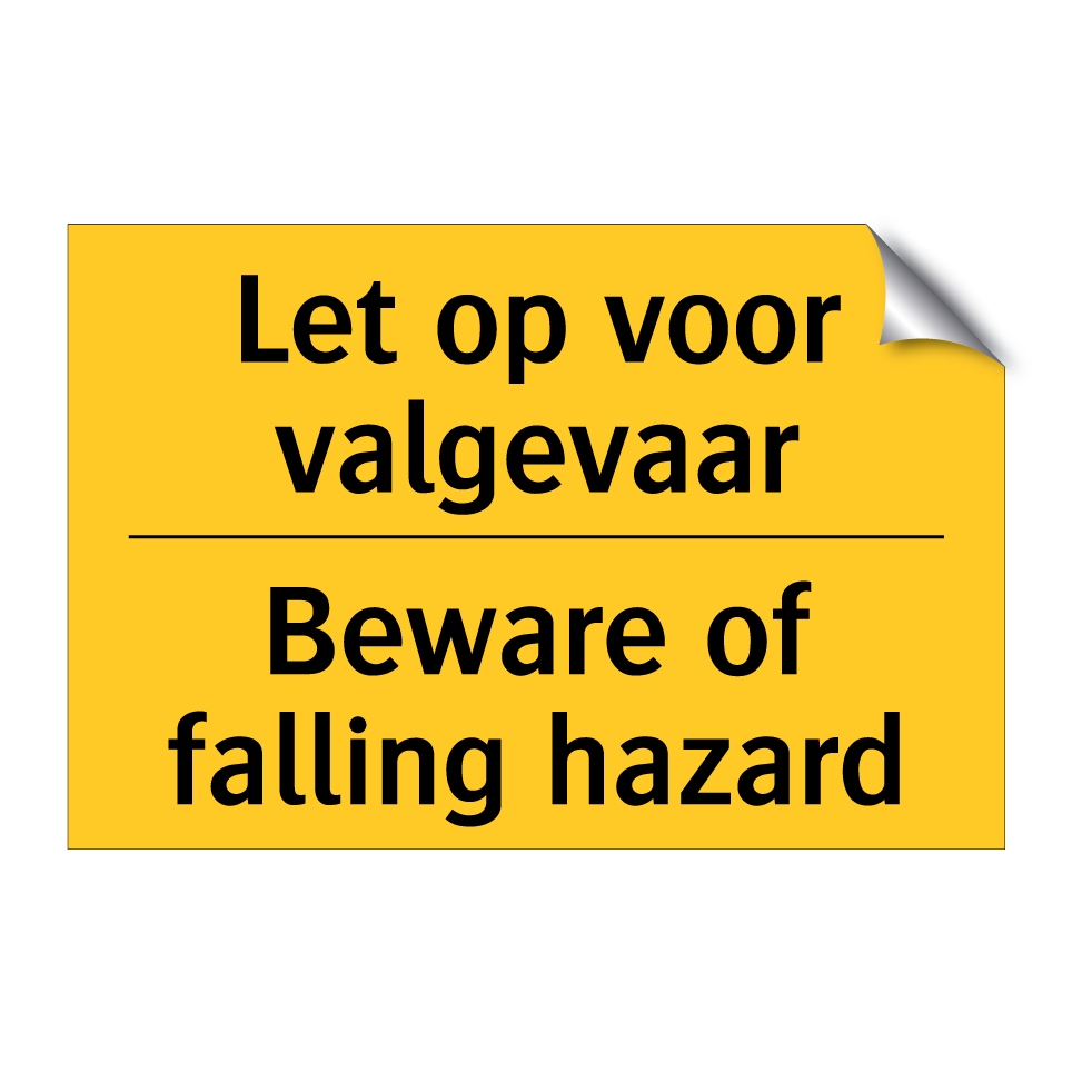 Waarschuwingsbord met de tekst Let op voor valgevaar / Beware of falling hazard