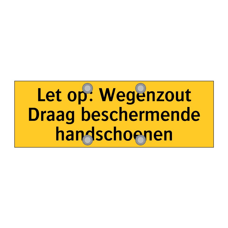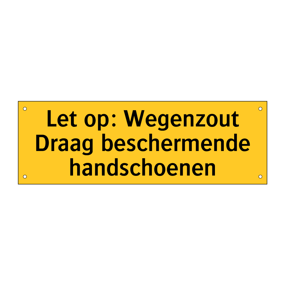 Waarschuwingsbord met de tekst Let op: Wegenzout Draag beschermende handschoenen