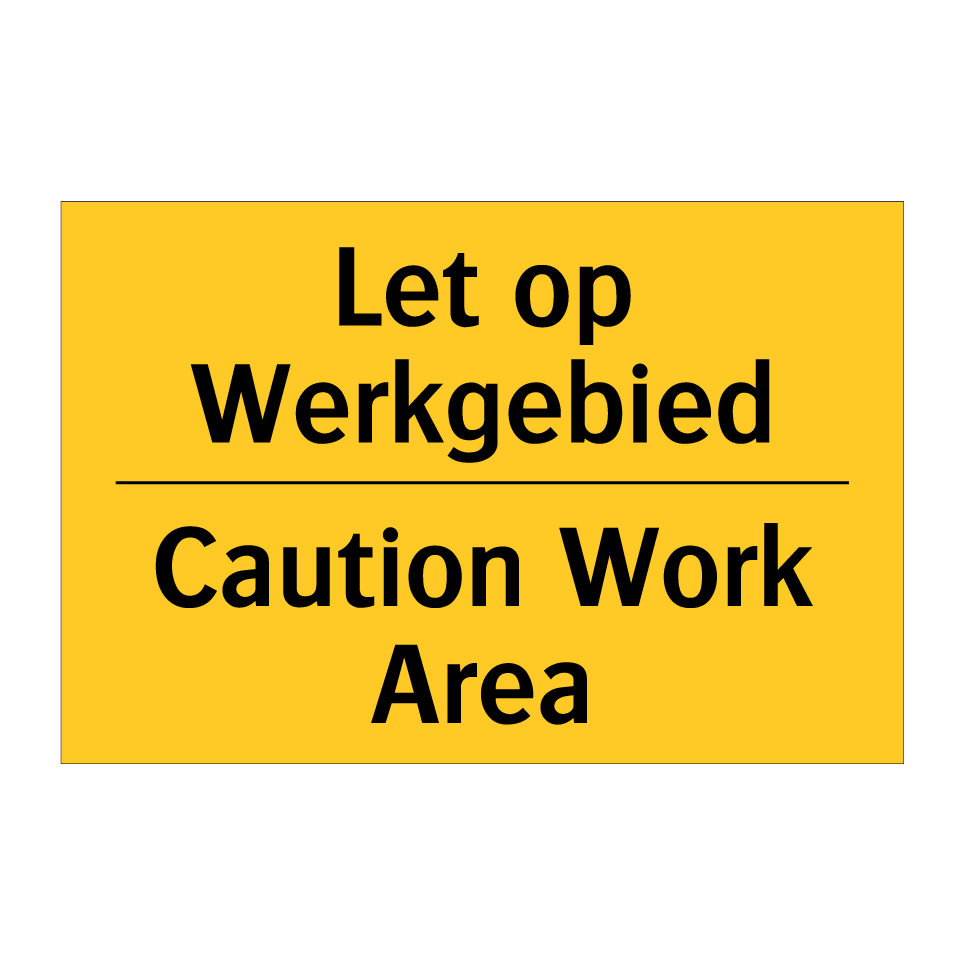 Waarschuwingsbord met de tekst Let op Werkgebied / Caution Work Area