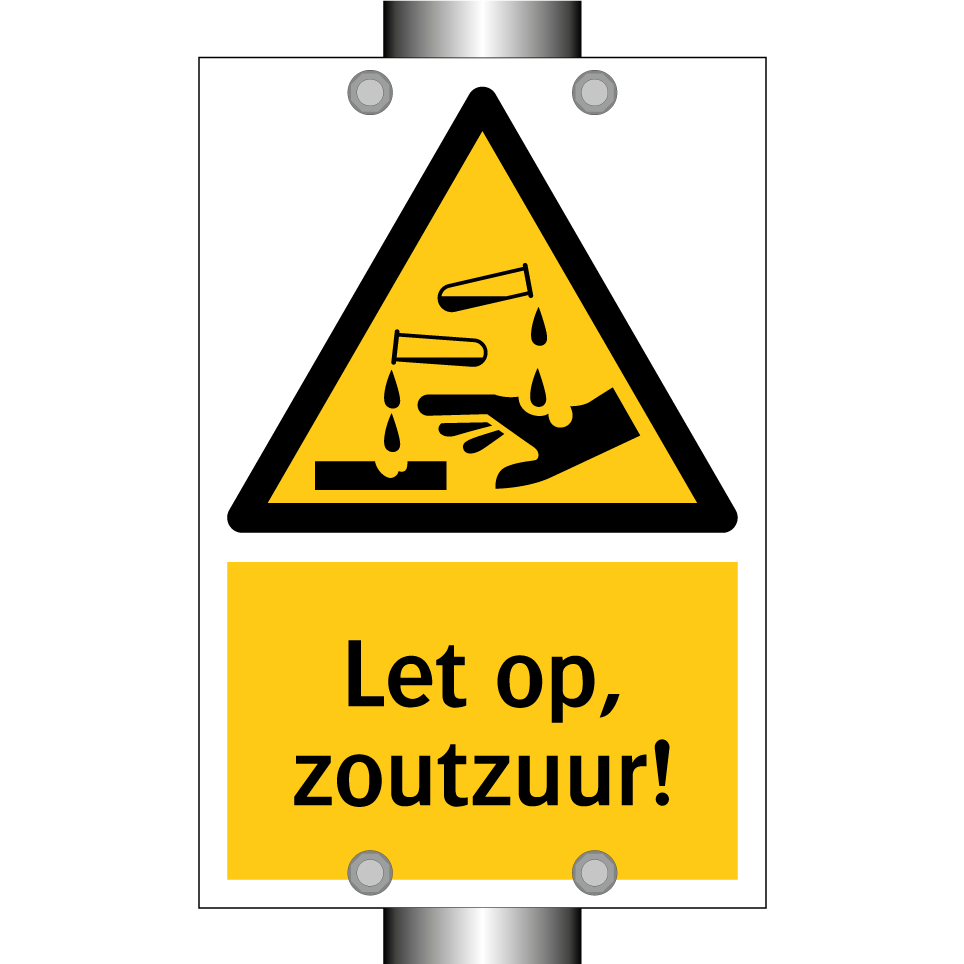 Waarschuwingsbord met de tekst Let op, zoutzuur!