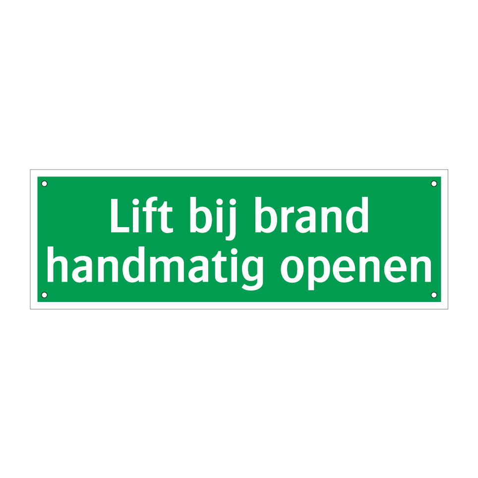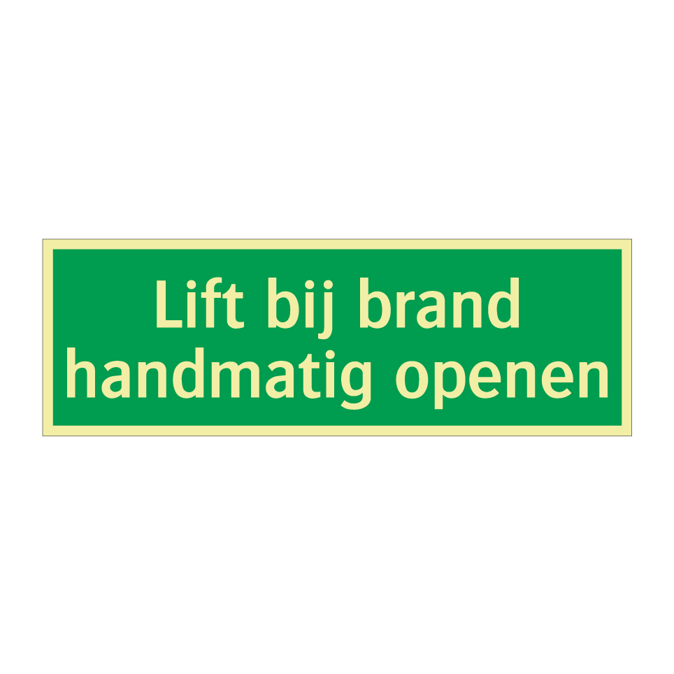 Deze noodbord is essentieel voor de veiligheid in gebouwen. Het geeft duidelijk aan dat de lift handmatig geopend moet worden in geval van brand. Dit noodbord is ideaal voor gebruik in kantoorgebouwen, appartementencomplexen, hotels en andere openbare ruimtes waar liften aanwezig zijn. Plaats het noodbord in de buurt van liftdeuren of op goed zichtbare plekken in gangen en trappenhuizen. Door deze duidelijke instructies te volgen, kunnen bewoners en bezoekers snel en veilig reageren tijdens een noodsituatie. Zorg ervoor dat iedereen weet wat te doen bij brand door dit noodbord strategisch te plaatsen.