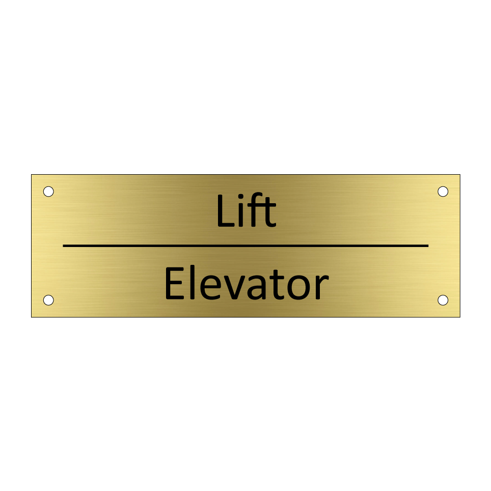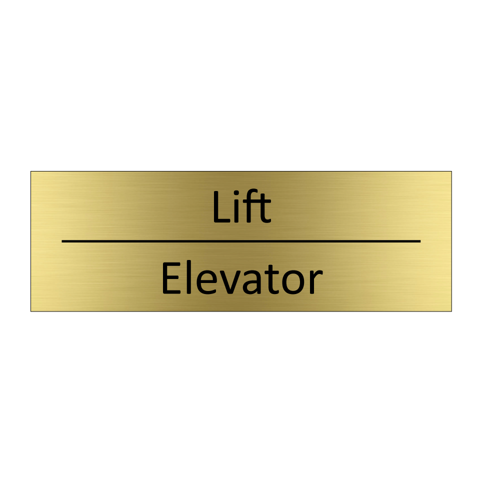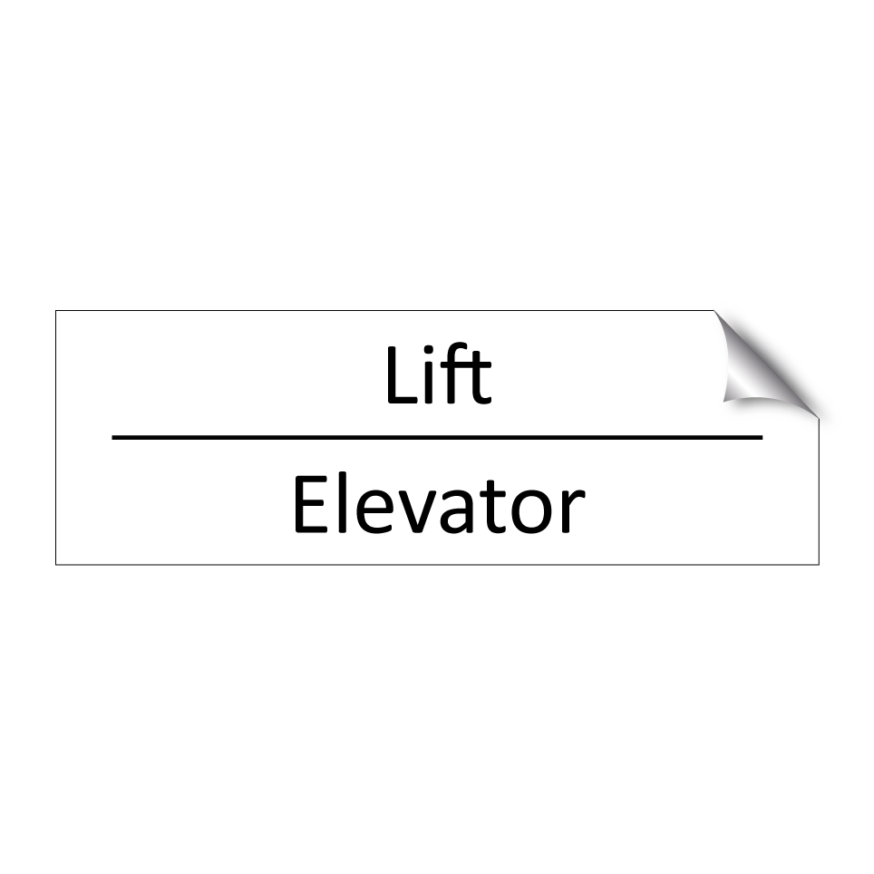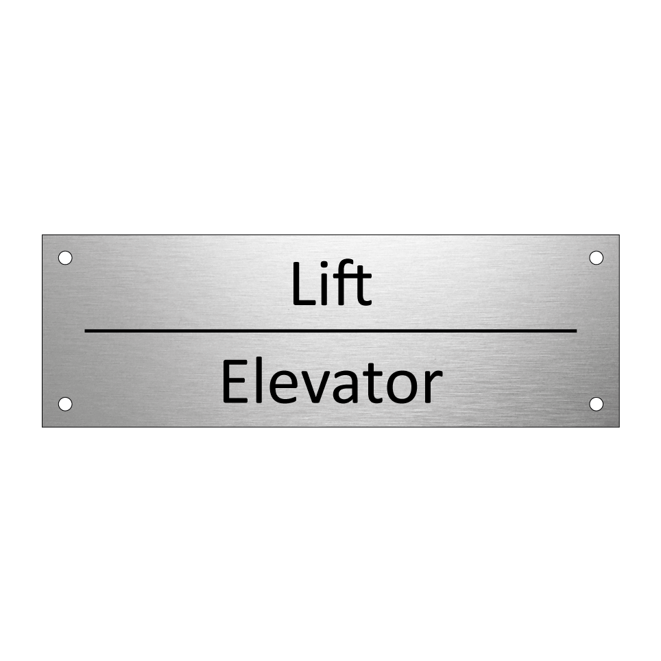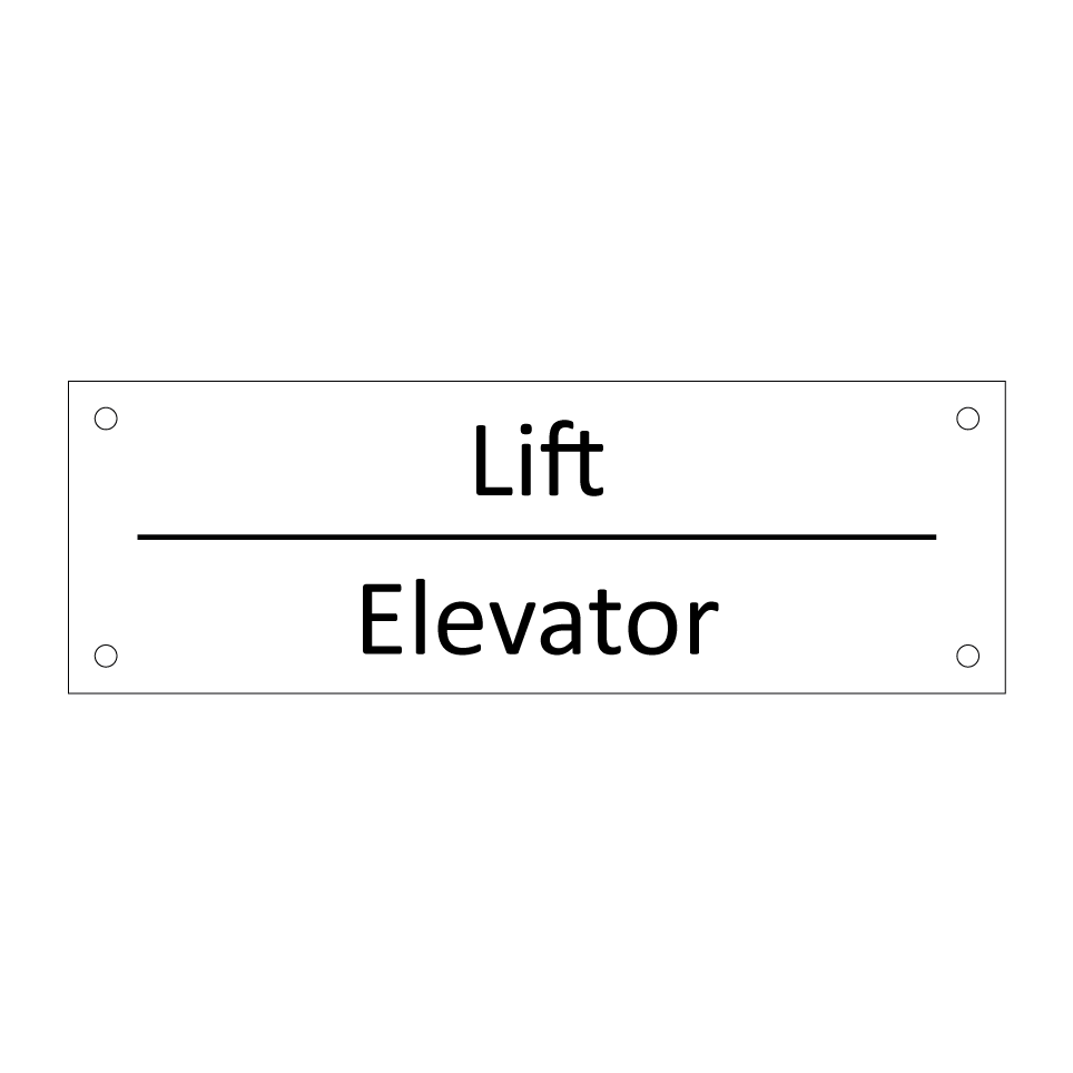Informatiebord met tekst in het nederlands en engels. Dit bord luidt: Lift evenals met de engelse vertaling Elevator.