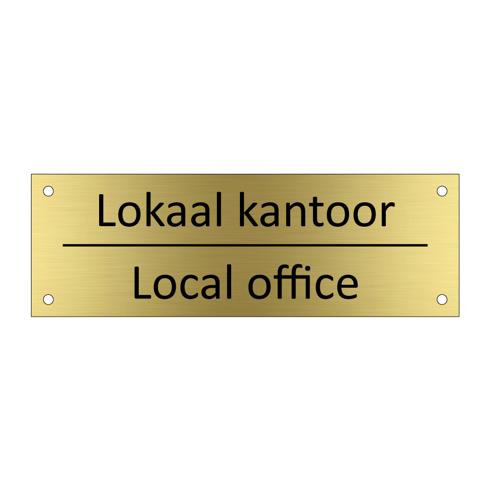 Informatiebord met tekst in het nederlands en engels. Dit bord luidt: Lokaal kantoor evenals met de engelse vertaling Local office.