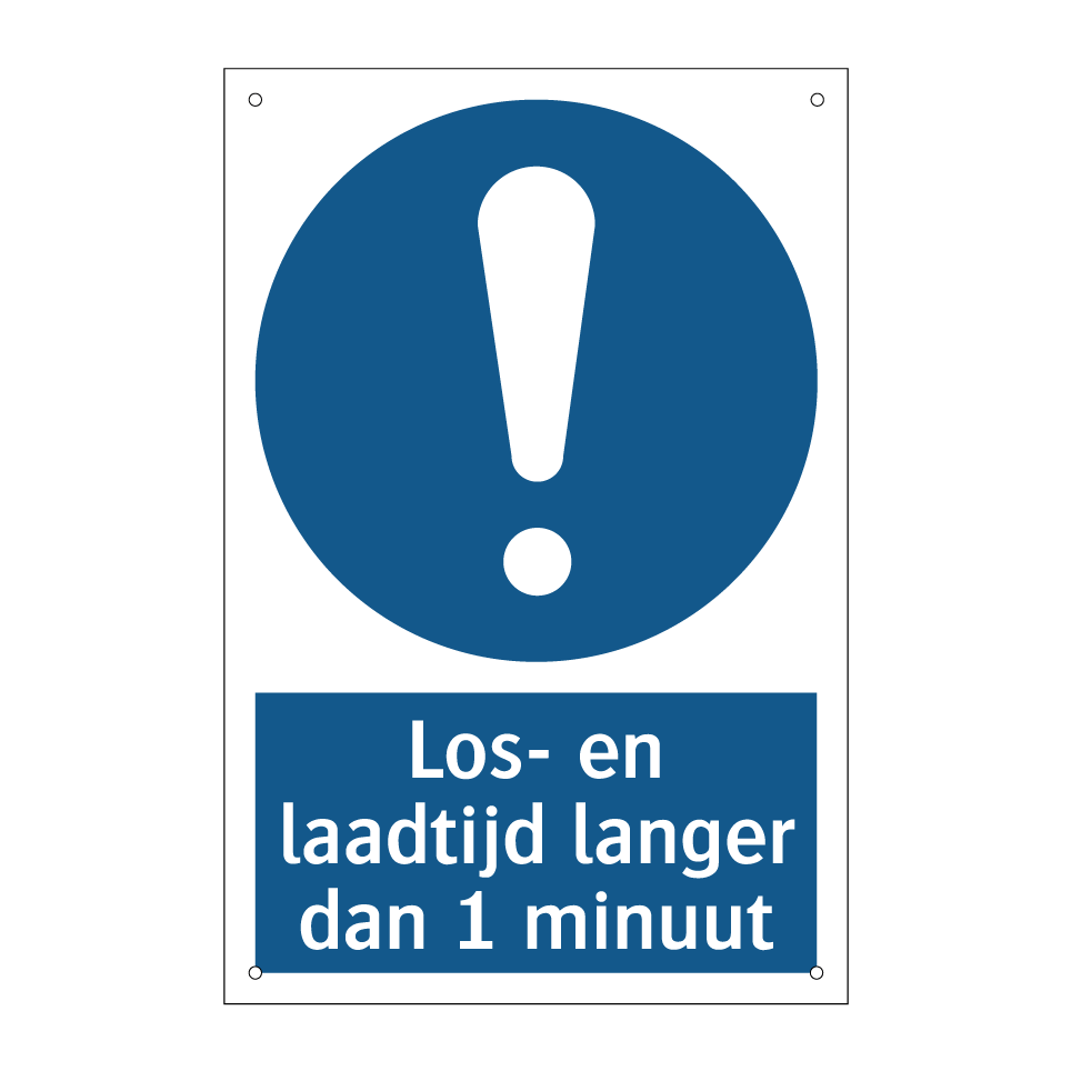 Verplichte bord met de tekst Los- en laadtijd langer dan 1 minuut