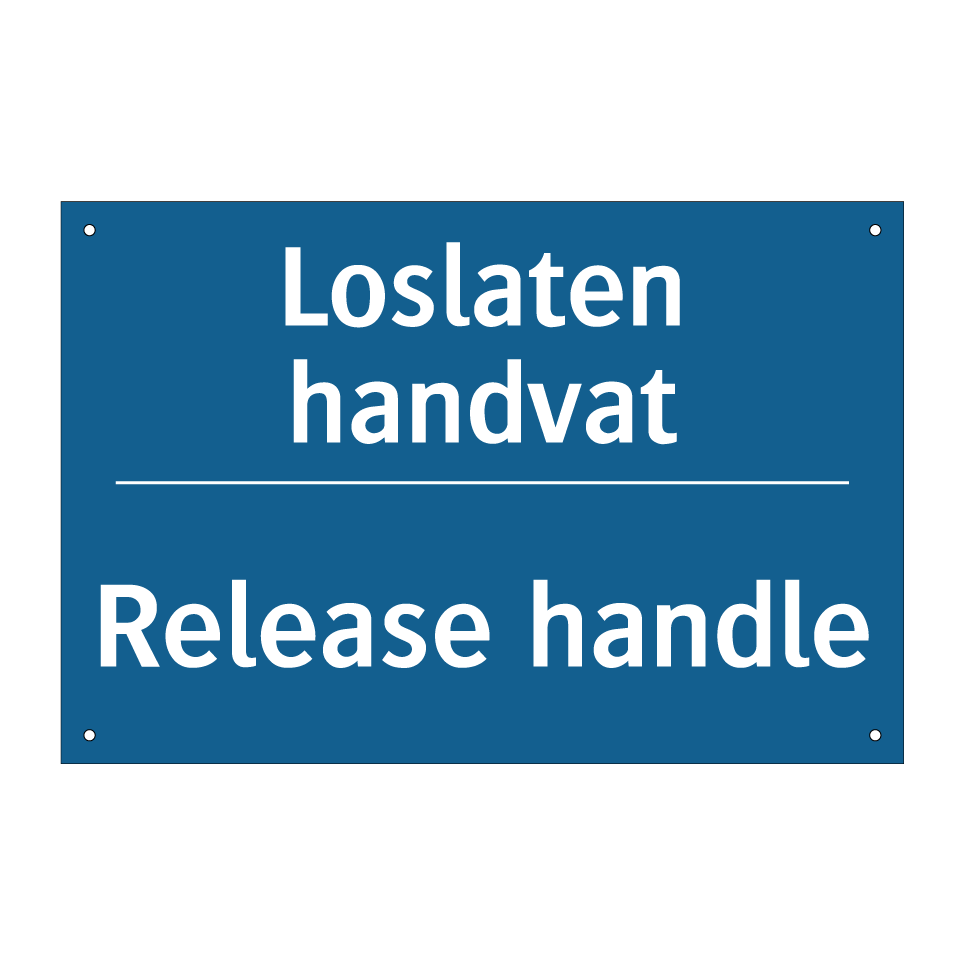 Verplichte bord met de tekst Loslaten handvat - Release handle