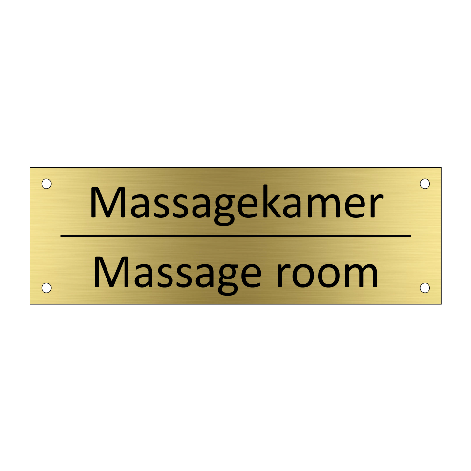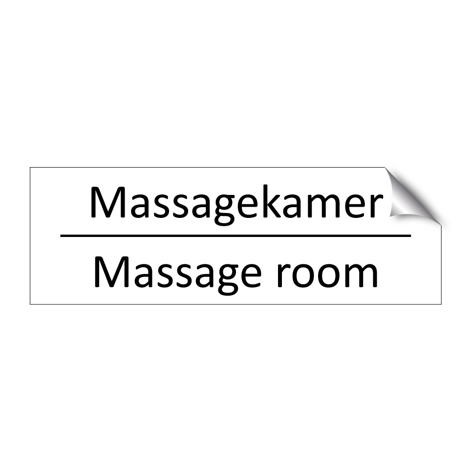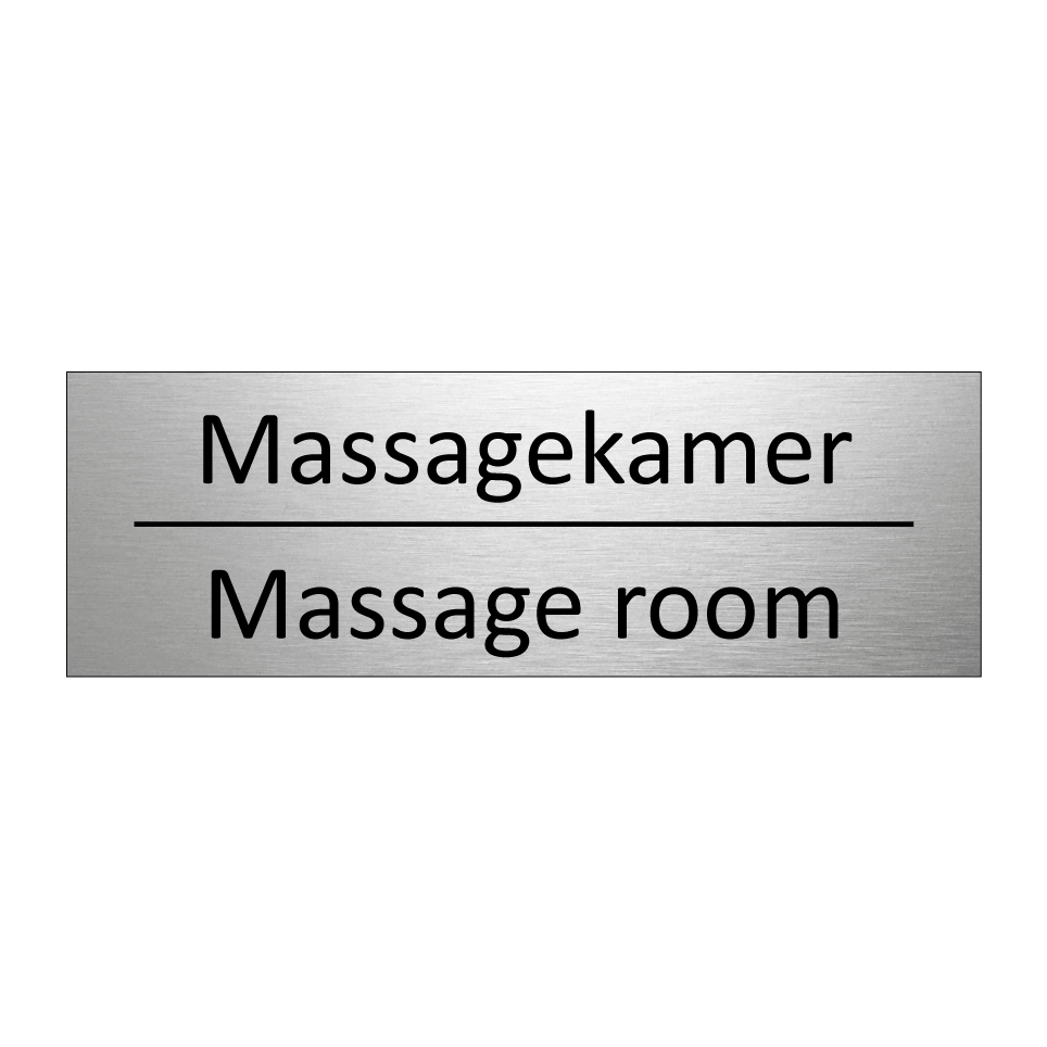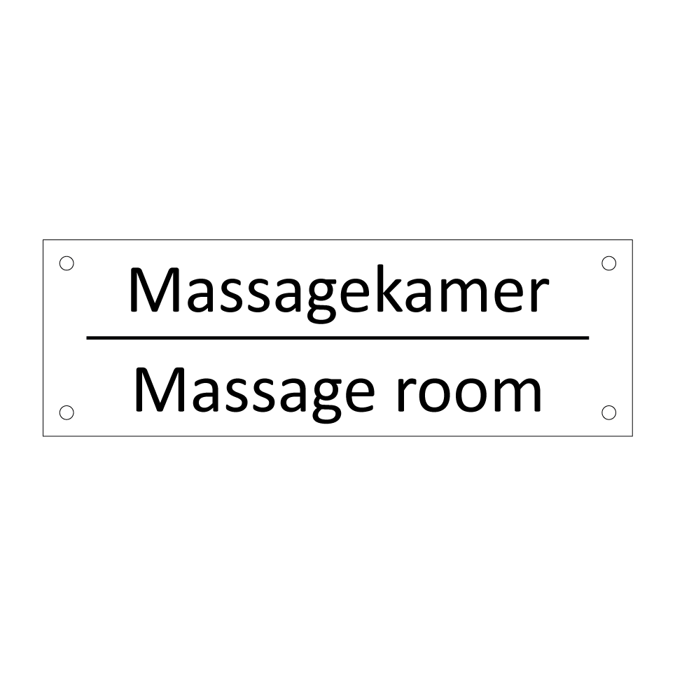 Informatiebord met tekst in het nederlands en engels. Dit bord luidt: Massagekamer evenals met de engelse vertaling Massage room.
