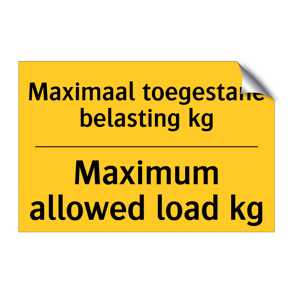 Waarschuwingsbord met de tekst Maximaal toegestane belasting kg / Maximum allowed load kg