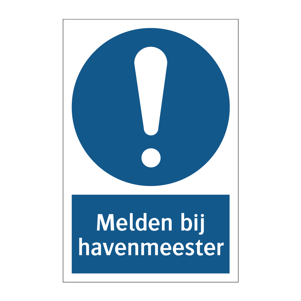 Ideaal voor gebruik in havens en jachthavens, deze verplichte bord zorgt ervoor dat bezoekers zich melden bij de havenmeester. Plaats deze bord bij de ingang van de haven, aanmeerplaatsen of bij de receptie om duidelijk te maken dat aanmelding verplicht is. Dit bordje helpt bij het handhaven van de veiligheid en organisatie binnen de havenfaciliteiten. Door de duidelijke symbolen en tekst is het eenvoudig te begrijpen voor iedereen. Perfect voor zowel commerciële als recreatieve havens, deze bord draagt bij aan een gestructureerde en veilige omgeving.