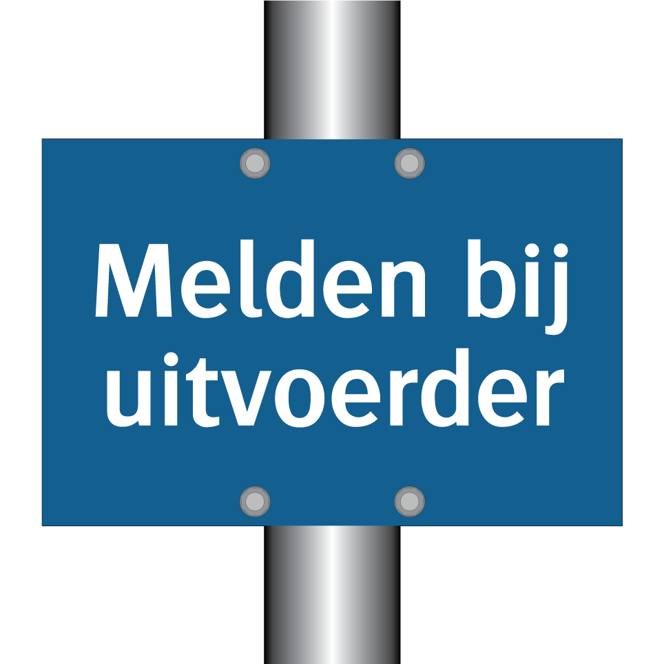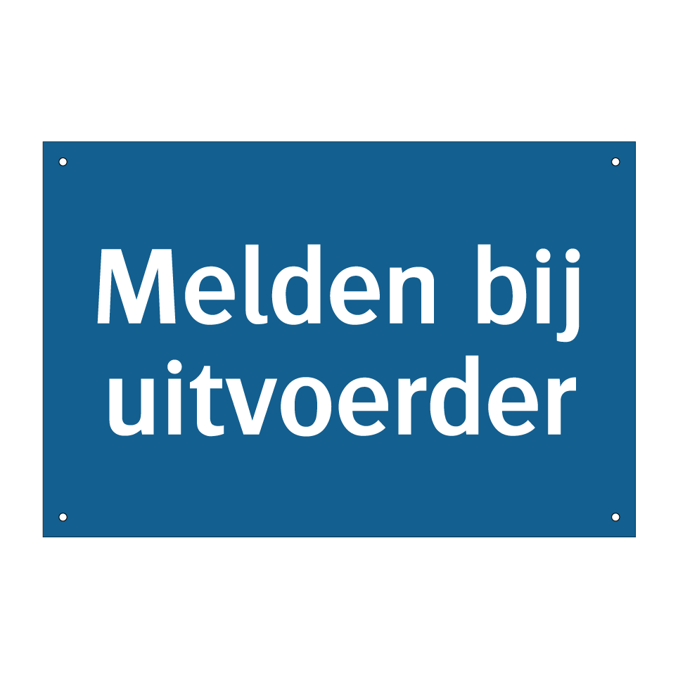 Ideaal voor bouwplaatsen en industriële omgevingen, deze verplichte bord zorgt ervoor dat iedereen zich aanmeldt bij de uitvoerder. Plaats deze bord bij ingangen, poorten of andere strategische locaties waar personeel en bezoekers binnenkomen. Het helpt bij het handhaven van de veiligheid en het overzicht op de werkplek. Door de duidelijke blauwe achtergrond en witte tekst is de boodschap goed zichtbaar en gemakkelijk te begrijpen. Gebruik deze bord om te zorgen voor een georganiseerde en veilige werkomgeving, waar iedereen weet waar ze zich moeten melden.