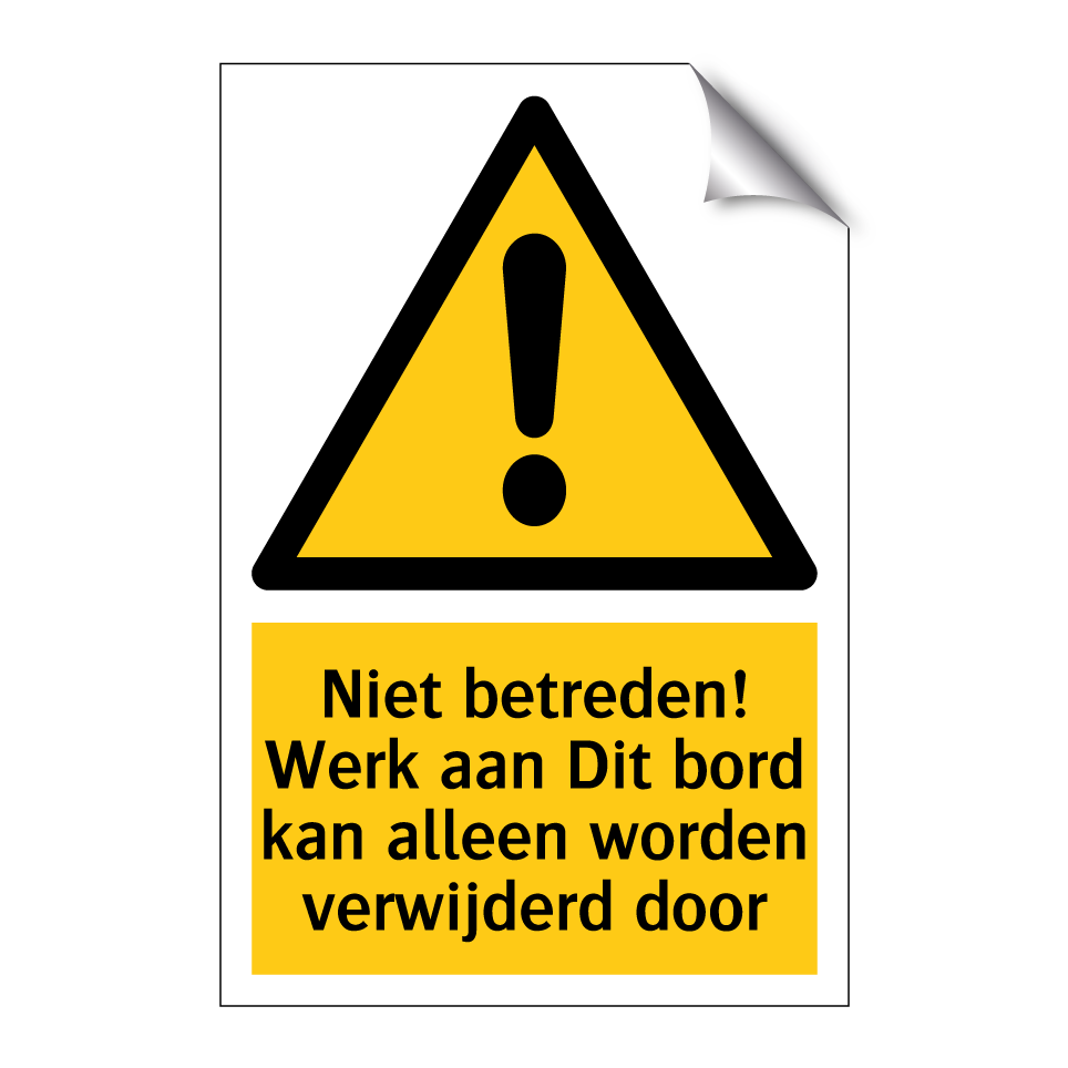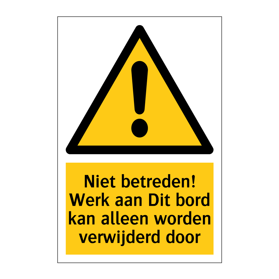 Waarschuwingsbord met de tekst Niet betreden! Werk aan Dit bordje kan alleen worden verwijderd door