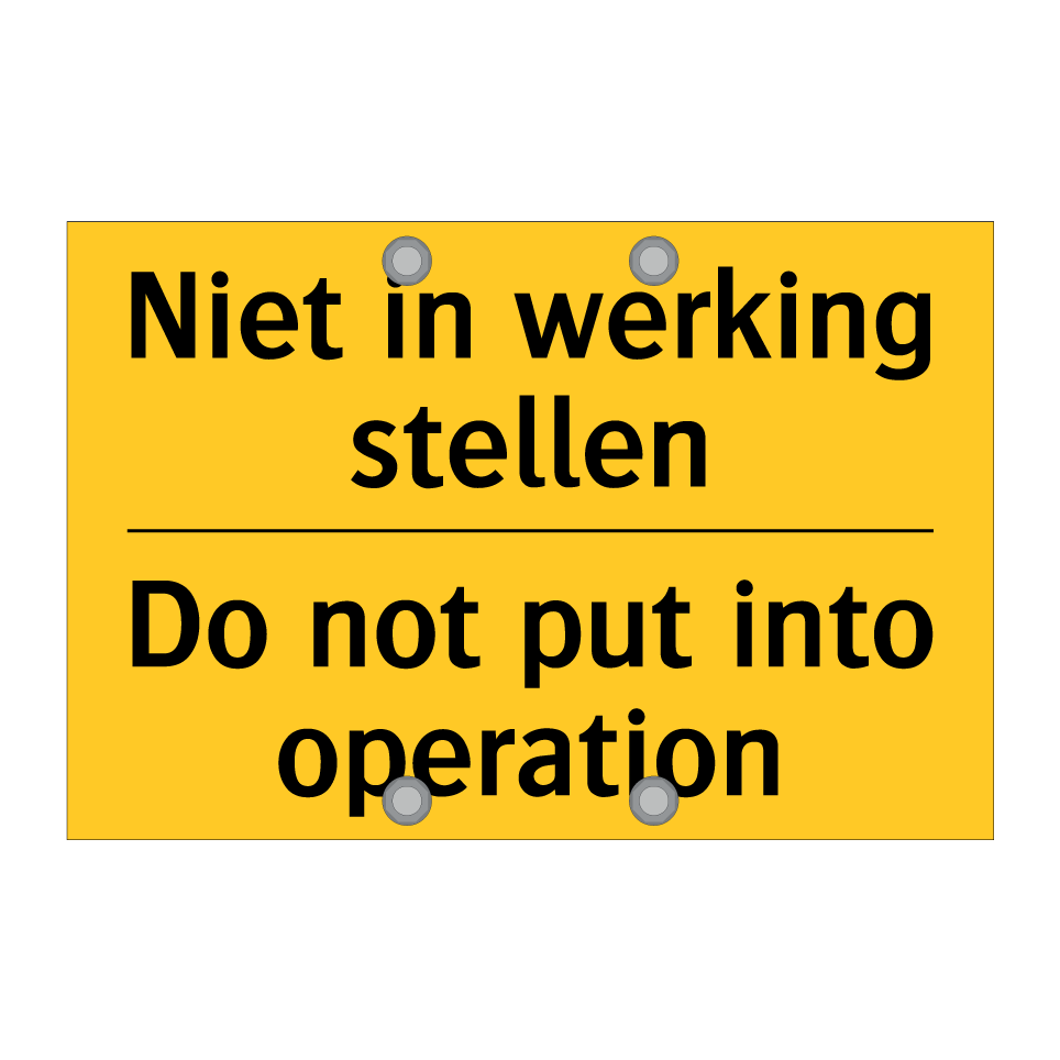 Waarschuwingsbord met de tekst Niet in werking stellen / Do not put into operation