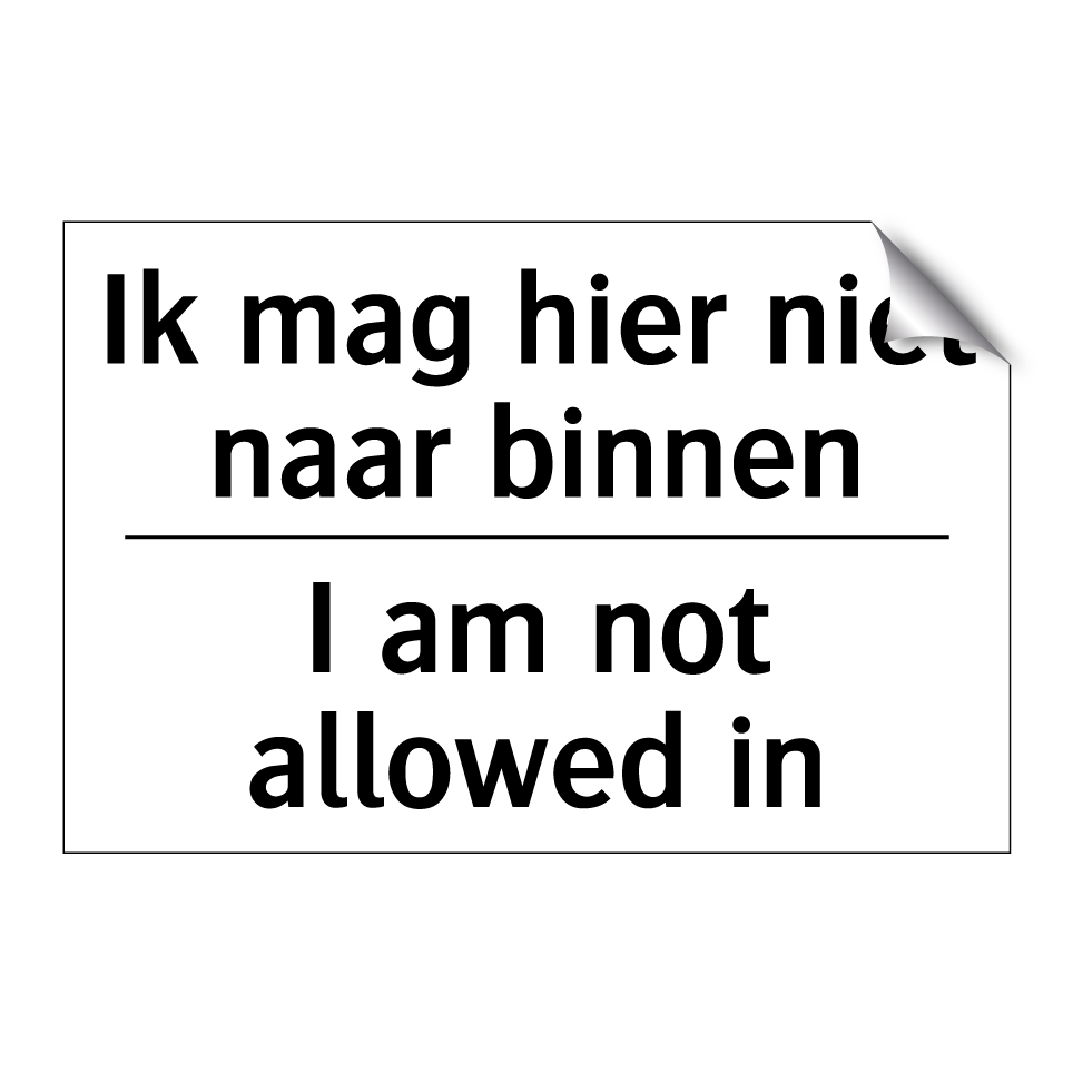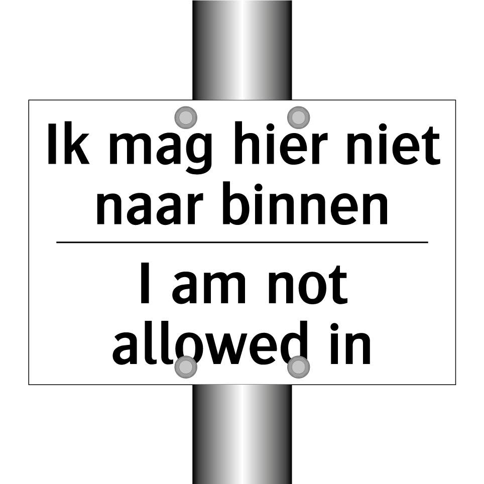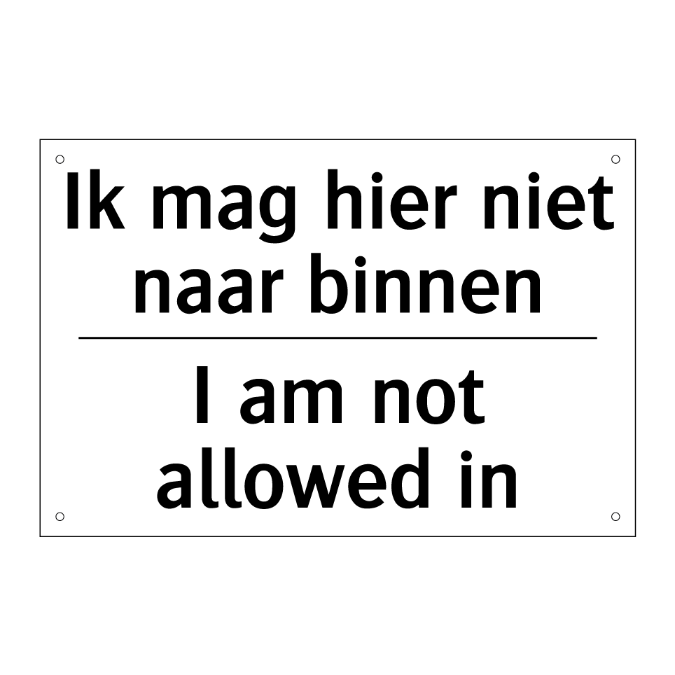 Verbodsbord met de tekst Ik mag hier niet naar binnen en in het Engels: I am not allowed in