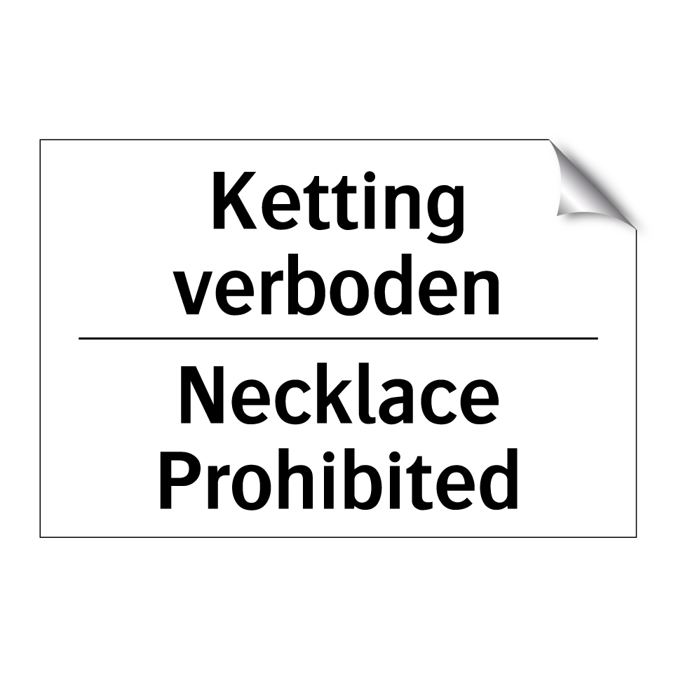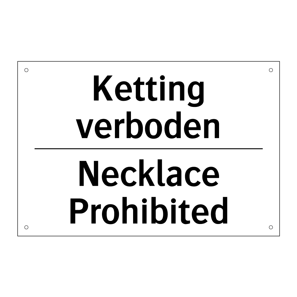 Verbodsbord met de tekst Ketting verboden en in het Engels: Necklace Prohibited