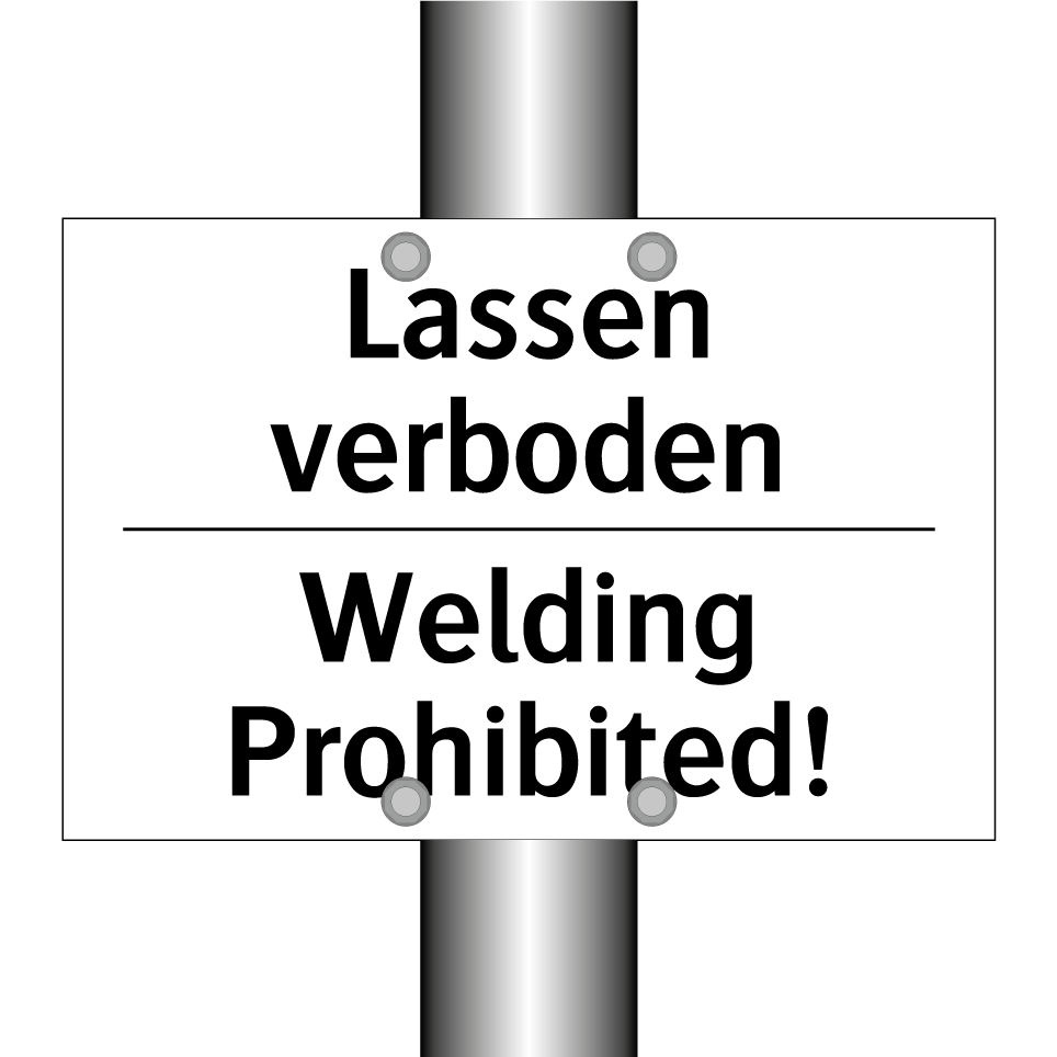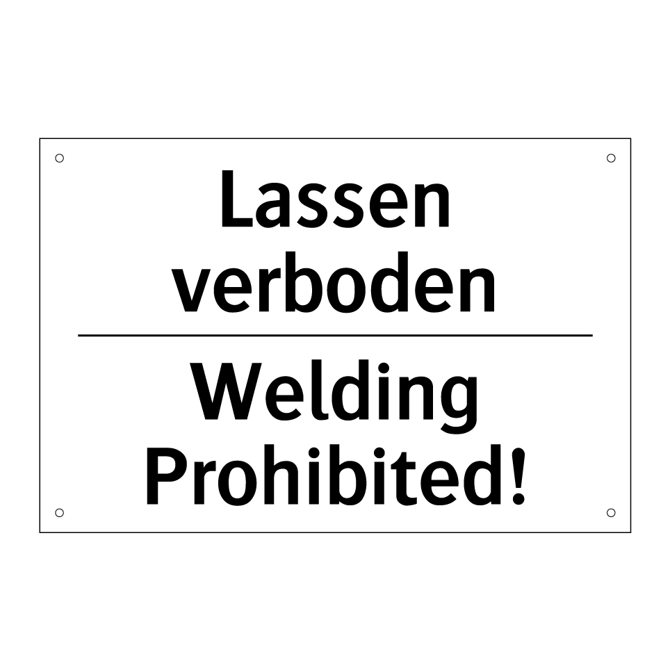 Verbodsbord met de tekst Lassen verboden en in het Engels: Welding Prohibited!