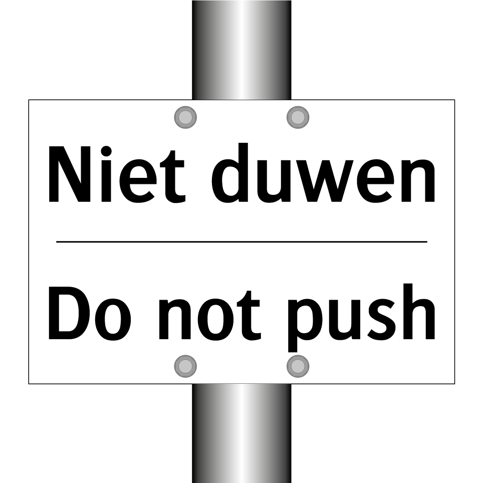 Verbodsbord met de tekst Niet duwen en in het Engels: Do not push