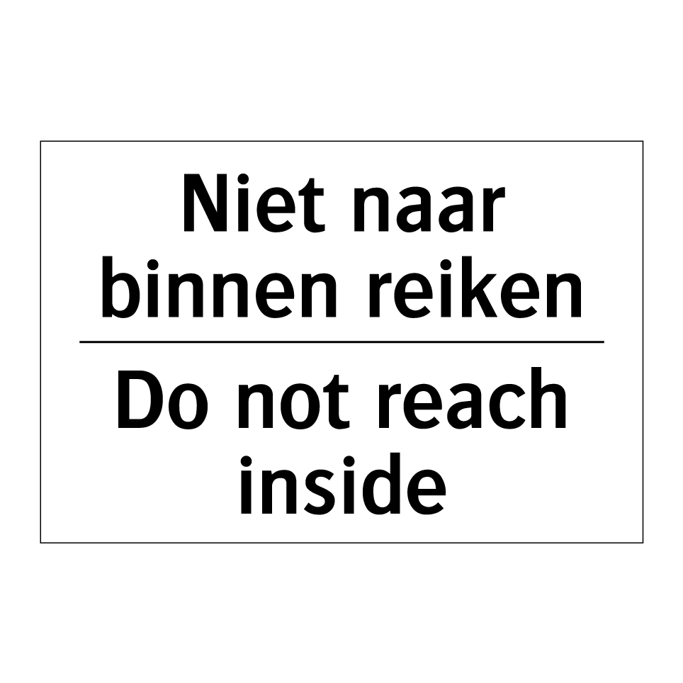 Verbodsbord met de tekst Niet naar binnen reiken en in het Engels: Do not reach inside