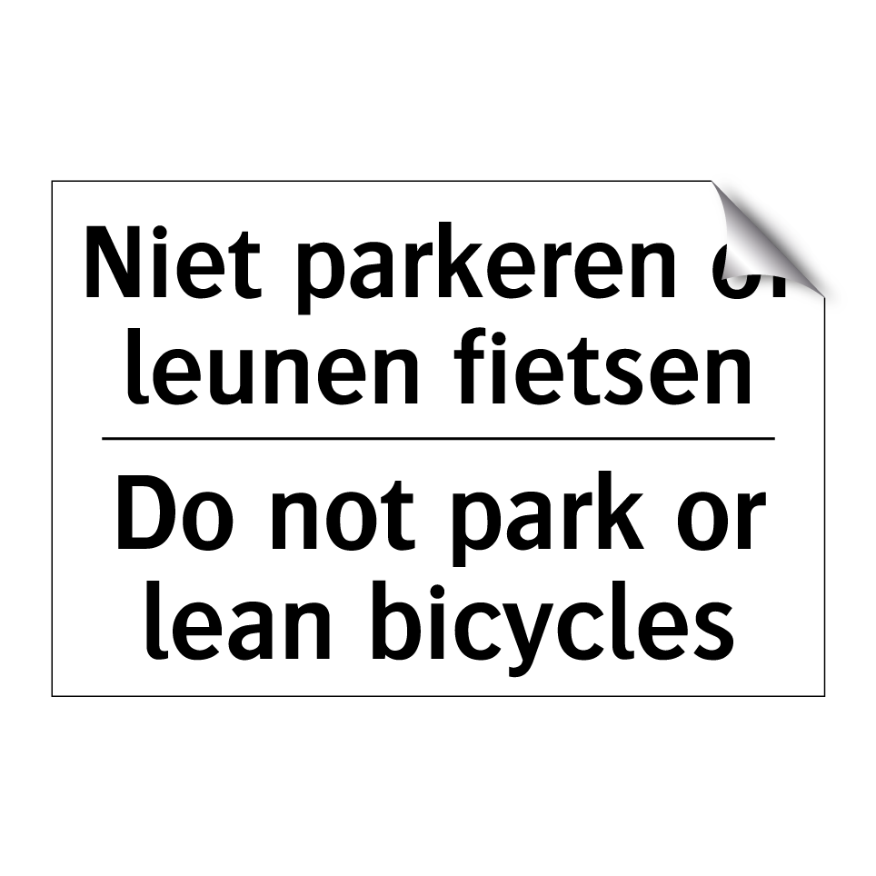 Verbodsbord met de tekst Niet parkeren of leunen fietsen en in het Engels: Do not park or lean bicycles