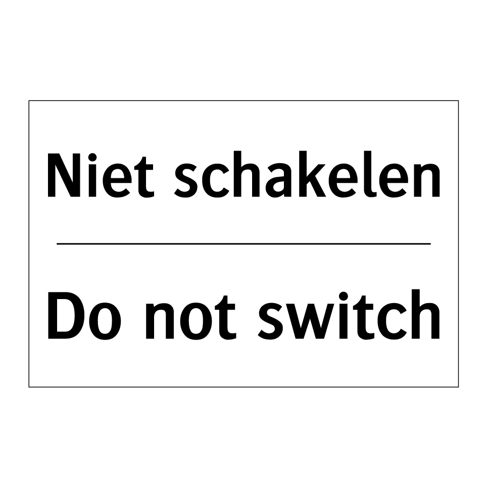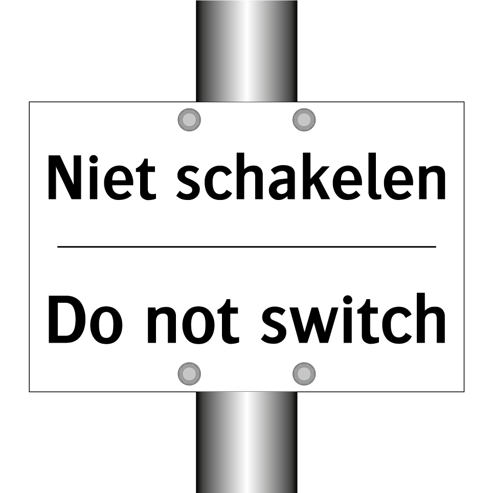 Verbodsbord met de tekst Niet schakelen en in het Engels: Do not switch