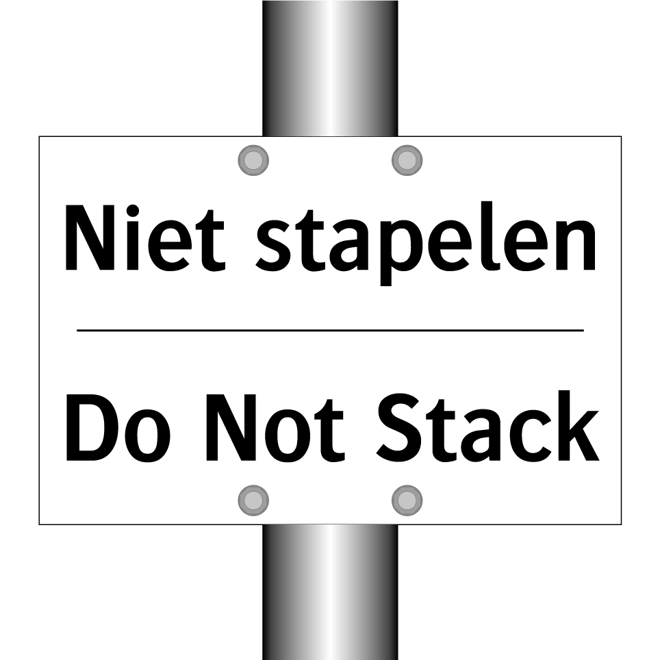 Verbodsbord met de tekst Niet stapelen en in het Engels: Do Not Stack