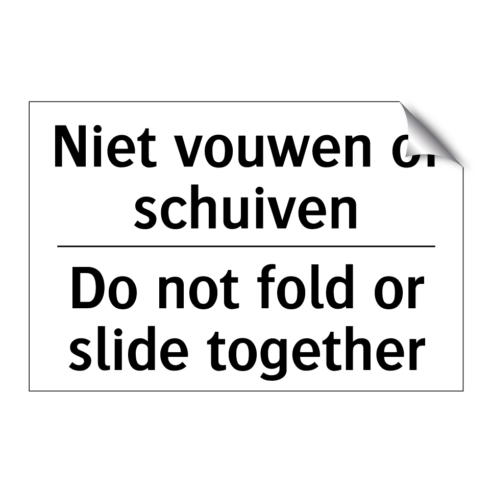 Verbodsbord met de tekst Niet vouwen of schuiven en in het Engels: Do not fold or slide together